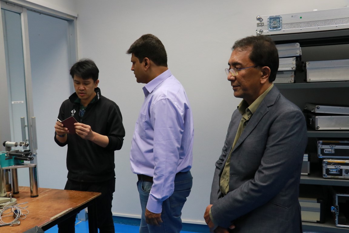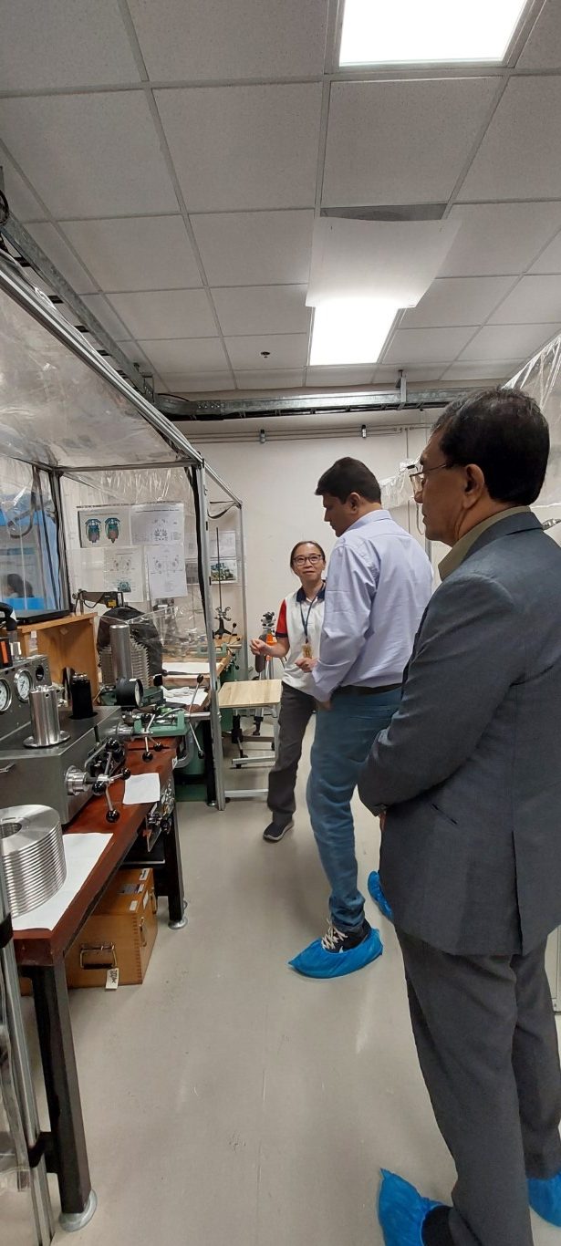 กระทรวงการอุดมศึกษา วิทยาศาสตร์ วิจัยและนวัตกรรม (อว.) สถาบันมาตรวิทยาแห่งชาติ (มว.) โดยดร.ปฎิพัทธ์ วงค์เทพ หัวหน้ากลุ่มงานกลศาสตร์ของไหล ฝ่ายมาตรวิทยาแห่งชาติ พร้อมด้วยหัวหน้ากลุ่มงานกลศาสตร์ของแข็งและการทดสอบ และนักมาตรวิทยา ให้การต้อนรับ Mr. Zaharuddin Bin Abdul Latiff, Business Development and Quality Manager จาก Sushma Calibration ประเทศมาเลเซีย และ Mr. Prashaant Aklekar, Chief Metrologist, Sushma Calibration ประเทศอินเดีย ในโอกาสเข้าหารือความร่วมมือด้านมาตรวิทยา และเข้าเยี่ยมชมห้องปฏิบัติการของสถาบัน โดยห้องปฏิบัติการที่ลูกค้าร้องขอในการเยี่ยมชมครั้งนี้คือ ห้องปฏิบัติการแรงบิด ห้องปฏิบัติการแรง และห้องปฏิบัติการความดัน กิจกรรมดังกล่าวจัดขึ้น ณ อาคารผดุงมาตร และอาคารพัฒนาระบบราง (มว.) คลองห้า จังหวัดปทุมธานี