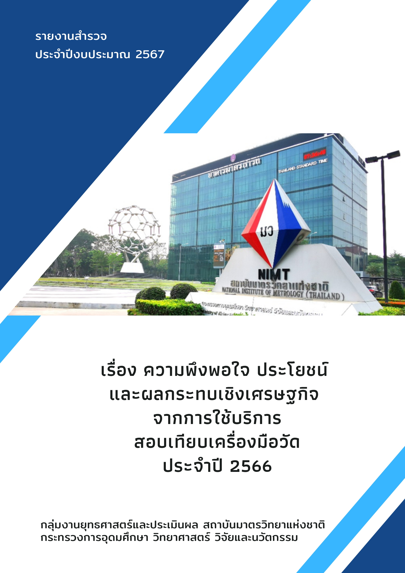 รายงานผลสำรวจ ประจำปีงบประมาณ 2567 เรื่อง ความพึงพอใจ ประโยชน์และผลกระทบเชิงเศรษฐกิจ จากการใช้บริการสอบเทียบเครื่องมือวัดกับสถาบันมาตรวิทยาแห่งชาติ ประจำปี 2566