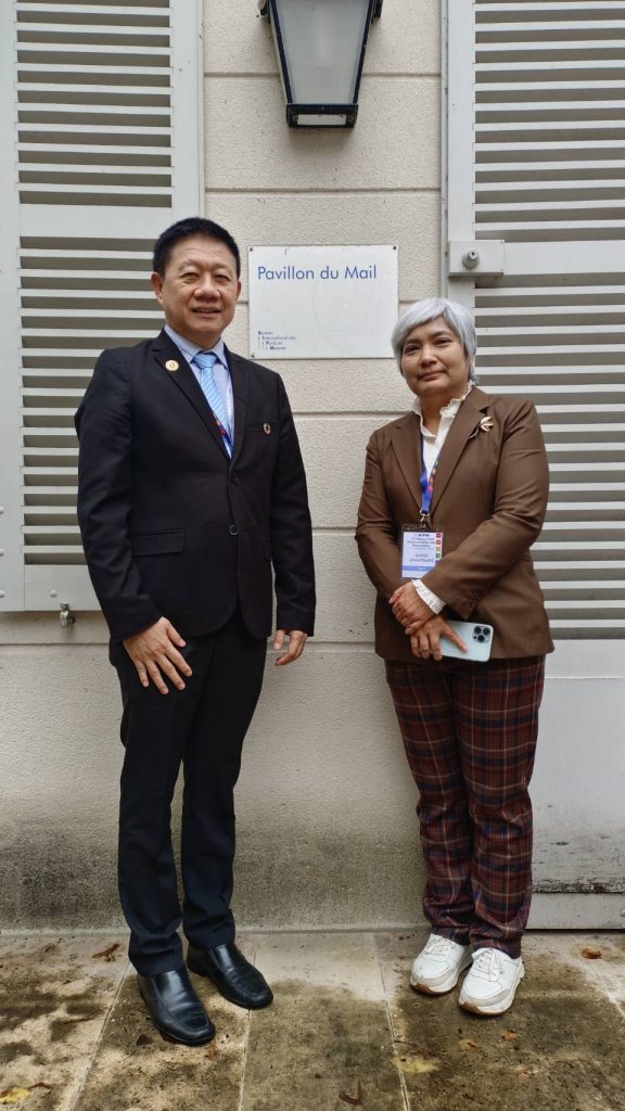 พล.ต.ท.นพ.พรชัย สุธีรคุณ ผู้อำนวยการ สถาบันมาตรวิทยาแห่งชาติ (มว.) พร้อมด้วย ดร.สิวินีย์ สวัสดิ์อารี หัวหน้าฝ่ายมาตรวิทยาไฟฟ้า ดร.จริยา บัวเจริญ นักมาตรวิทยาเชี่ยวชาญ ฝ่ายมาตรวิทยามิติ ไปเข้าร่วมประชุม 23rd meeting of NIM Directors and Member State Representatives ณ สาธารณรัฐฝรั่งเศส ตามหนังสือเชิญจาก BIPM: Bureau International des Poids et Mesures หรือสำนักงานชั่งตวงวัดระหว่างประเทศ