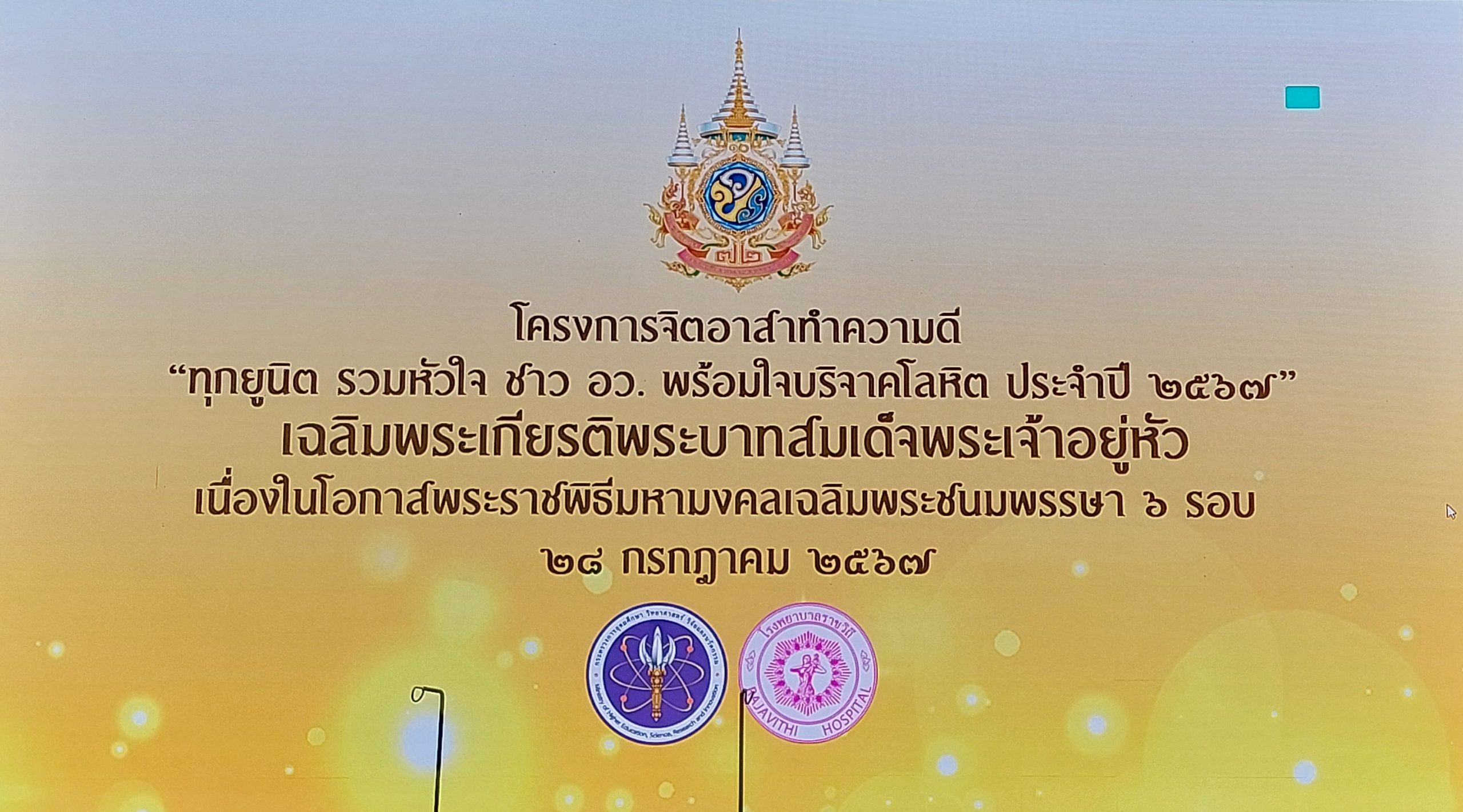 สำนักปลัดกระทรวงการอุดมศึกษา วิทยาศาสตร์ วิจัยและนวัตกรรม (อว.) จัดกิจกรรมโครงการจิตอาสาทำความดี “ทุกยูนิต รวมหัวใจ ชาว อว. พร้อมใจบริจาคโลหิต ครั้งที่ 3 ประจำปี 2567” โดยมีวัตถุประสงค์เพื่อให้บุคลากรในสังกัดกระทรวงการอุดมศึกษา วิทยาศาสตร์ วิจัยและนวัตกรรม ได้มีกิจกรรมร่วมกัน และเป็นการทำกิจกรรมจิตอาสา อันเป็นสาธารณประโยชน์ เนื่องในวันโอกาสพระราชพิธีมหามงคล เฉลิมพระเกียรติพระบาทสมเด็จพระเจ้าอยู่หัว เฉลิมพระชนมพรรษา 6 รอบ 28 กรกฎาคม 2567 ในการนี้ พนักงานของสถาบันมาตรวิทยาแห่งชาติ (มว.) ได้เข้าร่วมบริจาคโลหิตด้วย ณ ห้องแถลงข่าวชั้น 1 อาคารพระจอมเกล้า สำนักงานปลัดกระทรวงการอุดมศึกษา วิทยาศาสตร์ วิจัยและนวัตกรรม (โยธี) กรุงเทพฯ