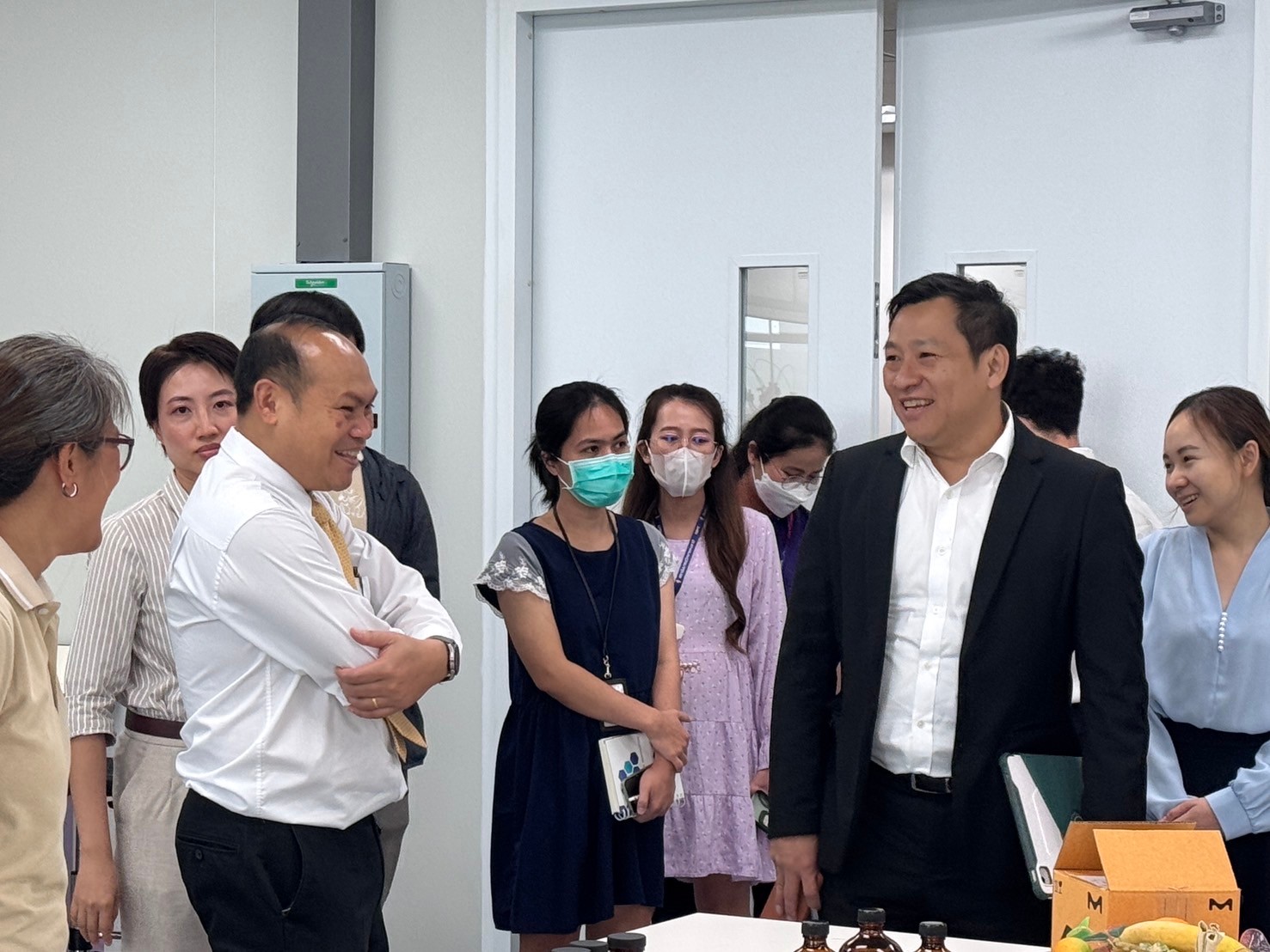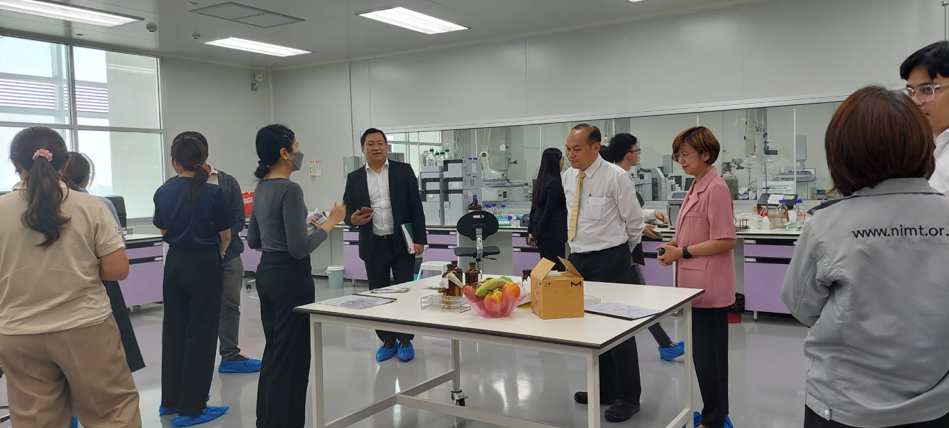 กระทรวงการอุดมศึกษา วิทยาศาสตร์ วิจัยและนวัตกรรม (อว.) สถาบันมาตรวิทยาแห่งชาติ (มว.) โดยดร. จรัญ ยะฝา ผู้ช่วยผู้อำนวยการ พร้อมด้วย ดร.จีรพา บุญญคง หัวหน้ากลุ่มงานวิเคราะห์อินทรีย์เคมี ดร.นงลักษณ์ ตั้งไพศาลกุล นักมาตรวิทยา กลุ่มงานวิเคราะห์อนินทรีย์เคมี และนักมาตรวิทยา ฝ่ายมาตรวิทยาเคมีและชีวภาพ ให้การต้อนรับ ดร.พัชราภรณ์ วงษา ผู้อำนวยการโปรแกรมบริหารโภชนเภสัชภัณฑ์และเวชสำอาง และทีมงานจากศูนย์ความเป็นเลิศด้านชีววิทยาศาสตร์ (องค์การมหาชน) หรือ Thailand Center of Excellence for Life Sciences (Public Organization) : TCELS และคุณอนันต์ ลาภสุขสถิต ประธานสถาบัน เค อะโกร-อินโนเวท (K-Agro Innovate : KAI) และทีมงาน ในโอกาสร่วมประชุมหารือความร่วมมือการพัฒนาสารมาตรฐานสำหรับการวิเคราะห์สารสำคัญในสมุนไพรไทย พร้อมทั้งเยี่ยมชมห้องปฏิบัติการของฝ่ายมาตรวิทยาเคมีและชีวภาพ โดยกิจกรรมดังกล่าวจัดขึ้น ณ อาคารมาตรธำรง (มว.) คลองห้า จังหวัดปทุมธานี