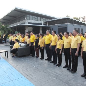 - บรรยากาศผู้บริหารและพนักงาน มว. ร่วมพิธีการปลูกต้นไม้