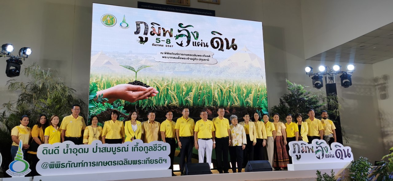 วันที่ 5 ธันวาคม 2567 เวลา 10.00 น. สำนักงานพิพิธภัณฑ์เกษตรเฉลิมพระเกียรติพระบาทสมเด็จพระเจ้าอยู่หัว (องค์การมหาชน) จัดพิธีเปิดงานมหกรรม ภูมิพลังแผ่นดิน ที่จัดขึ้นระหว่างวันที่ 5 – 8 ธันวาคม 2567 โดยได้รับเกียรติจาก นายอิทธิ ศิริลัทธยากร รัฐมนตรีช่วยว่าการกระทรวงเกษตรและสหกรณ์ เป็นประธานในพิธี โดยมีพันจ่าเอก ประเสริฐ มาลัย ผู้อำนวยการสำนักงานพิพิธภัณฑ์เกษตรเฉลิมพระเกียรติพระบาทสมเด็จพระเจ้าอยู่หัว เป็นผู้กล่าวรายงาน โดยมีวัตถุประสงค์เพื่อน้อมรำลึกเทิดพระเกียรติ ในพระมหากรุณาธิคุณของพระบาทสมเด็จพระบรมชนกาธิเบศร มหาภูมิพลอดุลยเดชมหาราช บรมนาถบพิตร ผู้ทรงเป็นดั่งกำลังของแผ่นดิน พร้อมเชิดชูเกียรติในฐานะที่ได้รับการสดุดีให้เป็นนักวิทยาศาสตร์ดินเพื่อมนุษยธรรม ณ ห้องประชุมศาสตร์พระราชา ชั้น 2 อาคารสำนักงานพิพิธภัณฑ์เกษตรฯ อ.คลองหลวง จ.ปทุมธานี