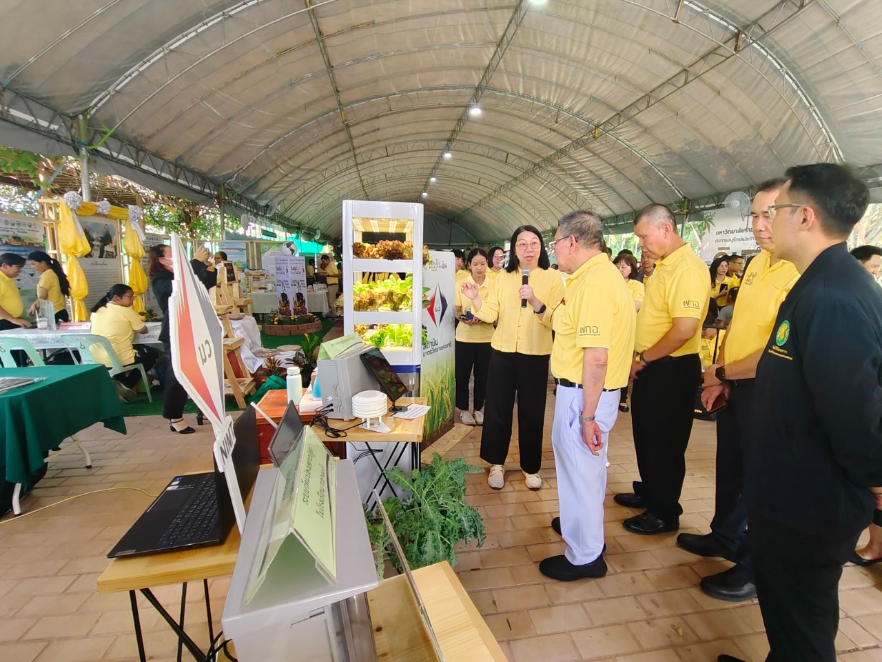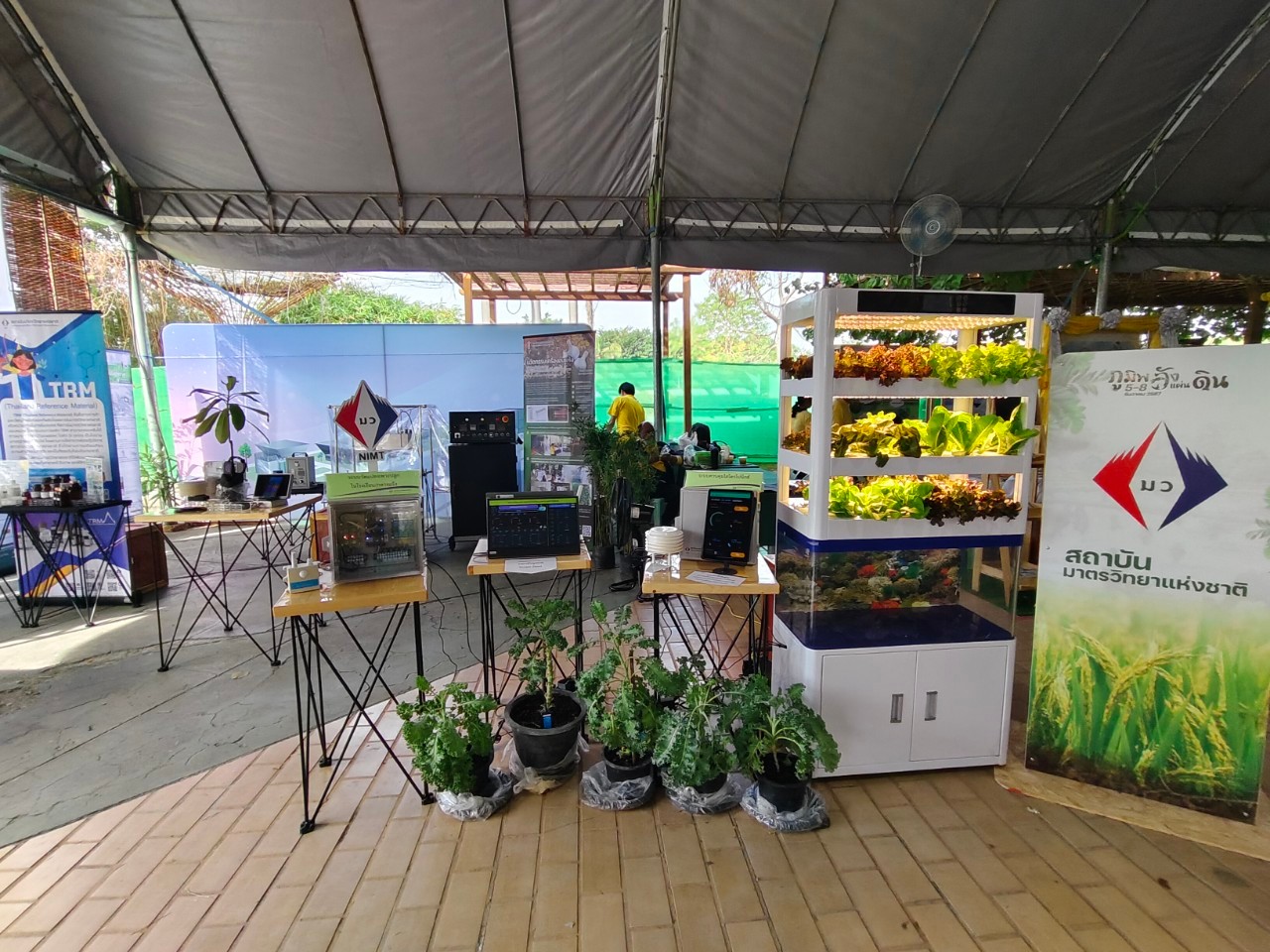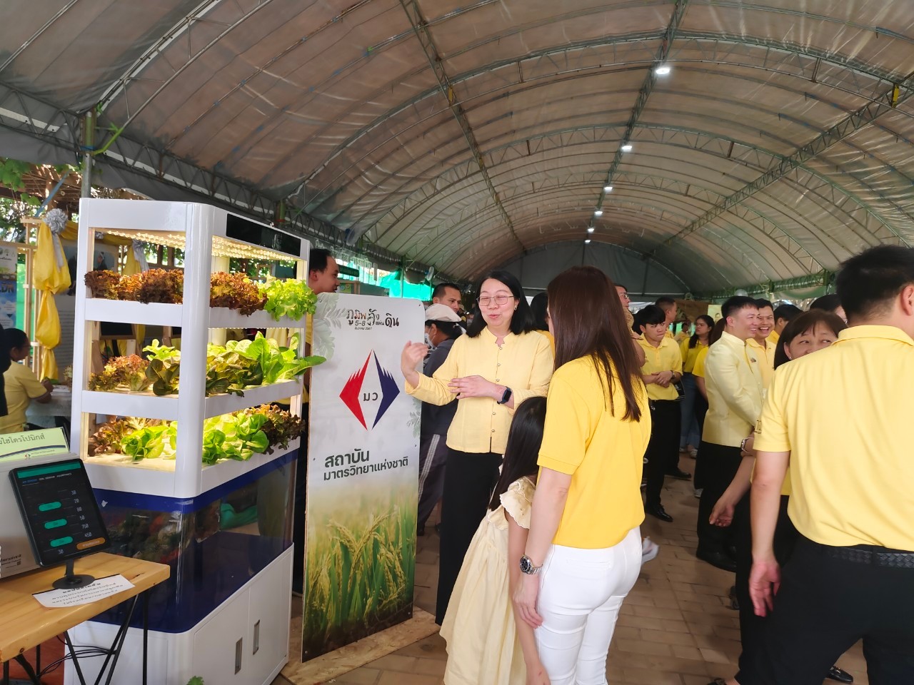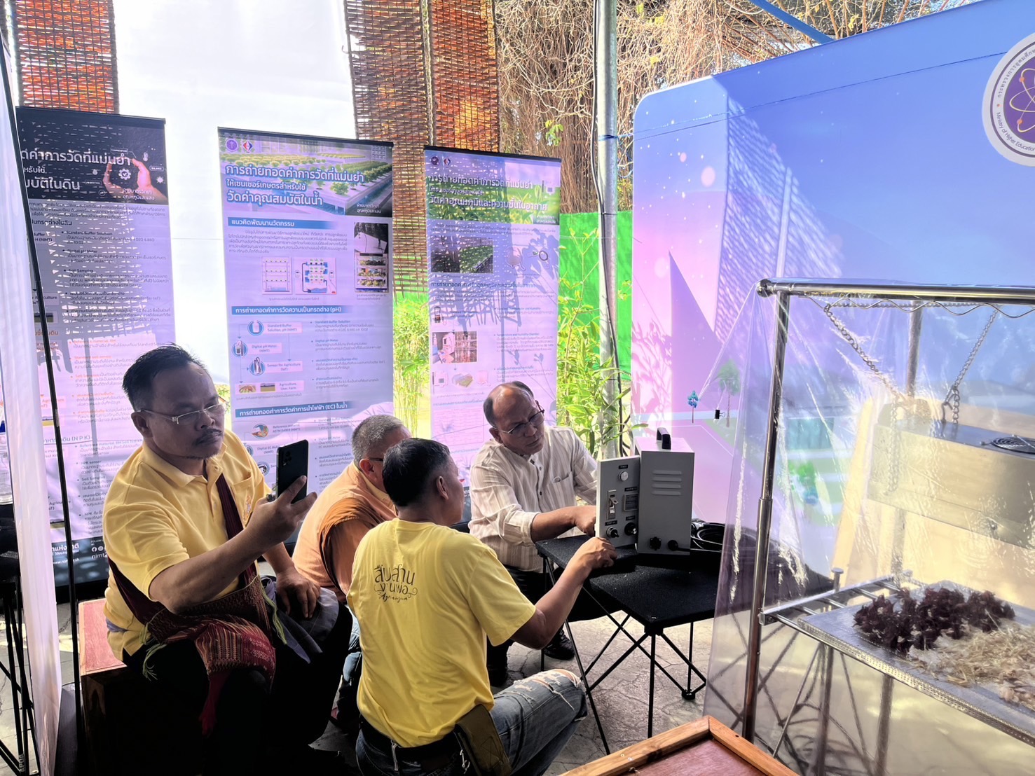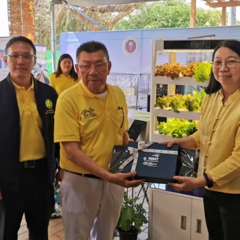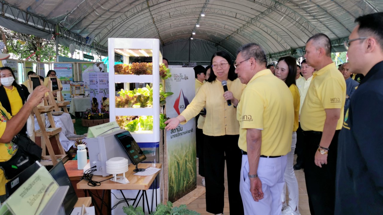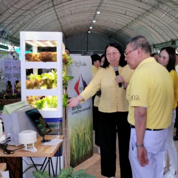 ในการนี้ น.ส.จรวยรัตน์ เหย่ากุลบดี หัวหน้าฝ่ายมาตรวิทยาอุณหภูมิและแสง พร้อมด้วย นายพิเชษ วงษ์นุช หัวหน้ากลุ่มงานมาตรฐานปฐมภูมิอุณหภูมิ และนักมาตรวิทยา มว. เข้าร่วมกิจกรรมและแสดงผลงานนิทรรศการวิชาการ เรื่อง “เซนเซอร์เกษตรแม่นยำเพื่อการเพิ่มคุณภาพและผลผลิตทางการเกษตร” ภายใต้กรอบแนวคิด “การเพิ่มผลผลิตพืชเกษตรที่มีคุณภาพด้วยปัจจัยการผลิตที่น้อยและยั่งยืนด้วยการใช้เทคโนโลยี” โดยเป็นการนำกระบวนการวัดทางมาตรวิทยามาประยุกต์ใช้ในงานด้านเกษตร ซึ่งจะช่วยให้เกษตรกรมีเครื่องมือที่ใช้ควบคุมปัจจัยการเพาะปลูกต่างๆ ได้เที่ยงตรงแม่นยำ พร้อมข้อมูลการเพาะปลูกที่จะช่วยพัฒนาเกษตรกรให้สามารถปลูกพืชที่มีคุณภาพและปริมาณผลผลิตที่ดีขึ้น