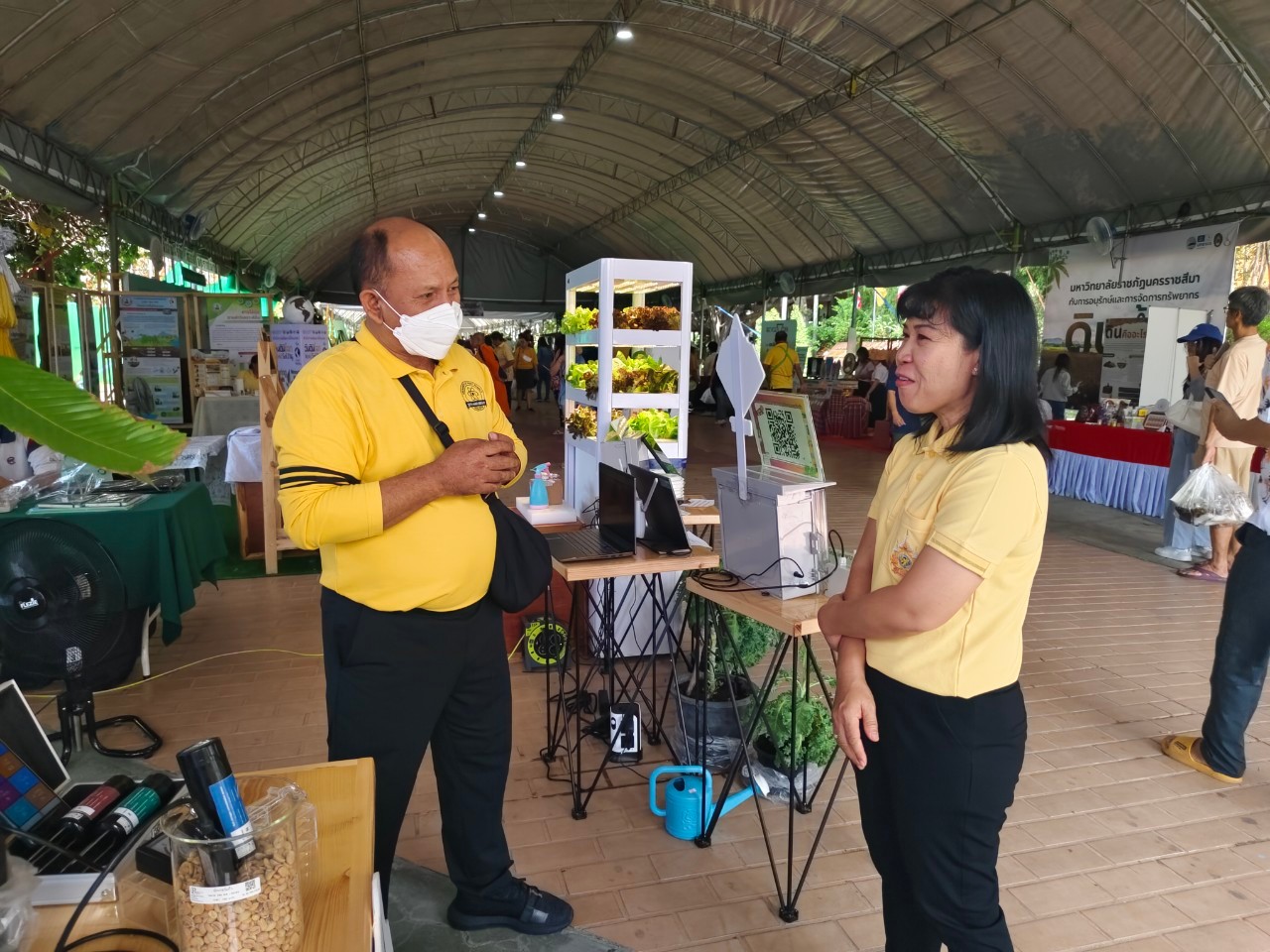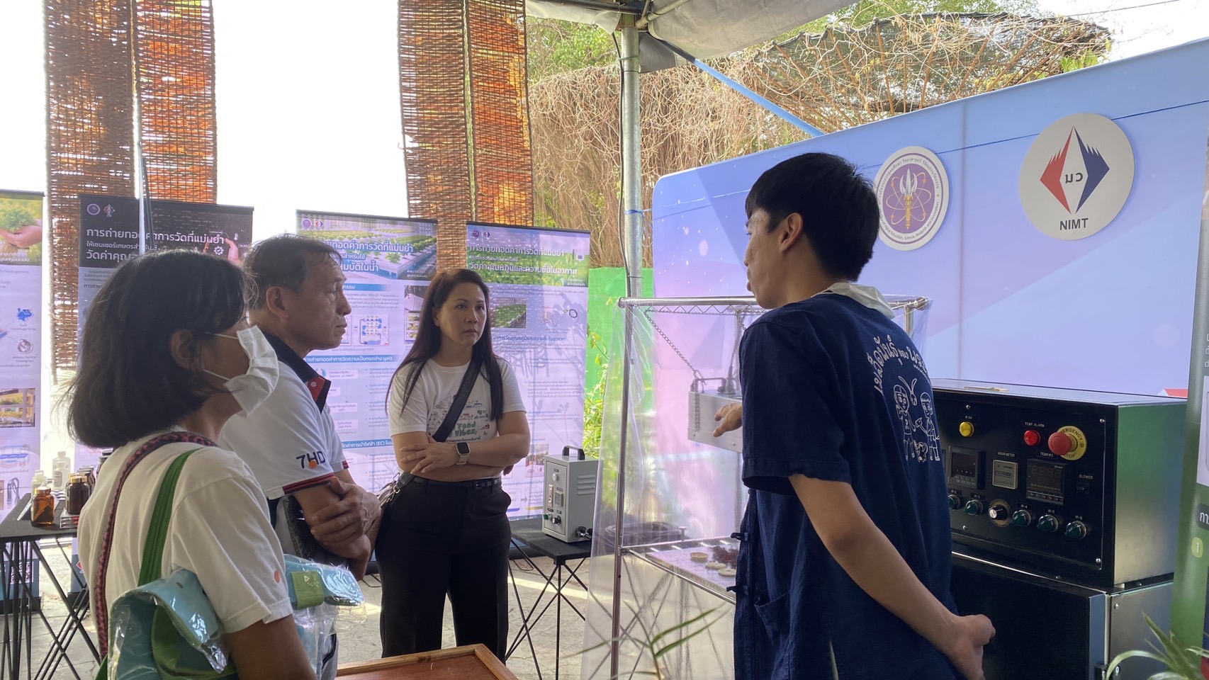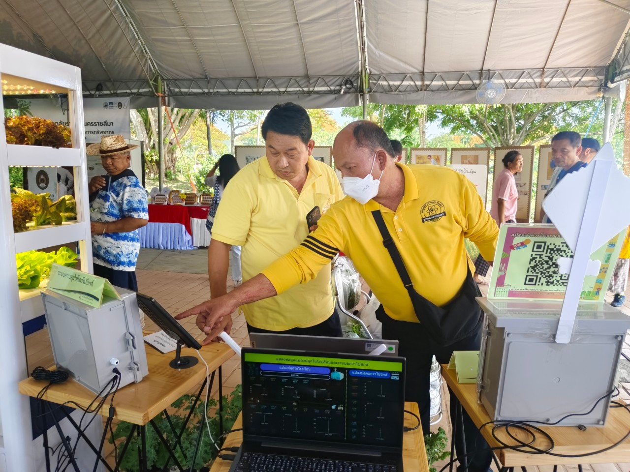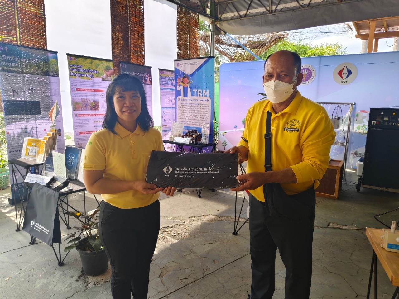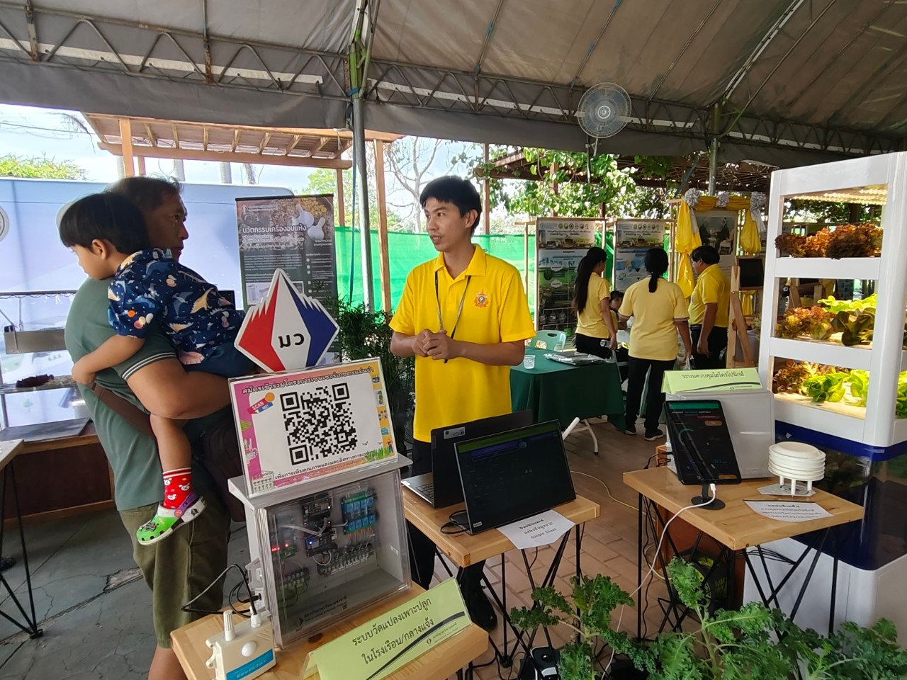ในการนี้ น.ส.จรวยรัตน์ เหย่ากุลบดี หัวหน้าฝ่ายมาตรวิทยาอุณหภูมิและแสง พร้อมด้วย นายพิเชษ วงษ์นุช หัวหน้ากลุ่มงานมาตรฐานปฐมภูมิอุณหภูมิ และนักมาตรวิทยา มว. เข้าร่วมกิจกรรมและแสดงผลงานนิทรรศการวิชาการ เรื่อง “เซนเซอร์เกษตรแม่นยำเพื่อการเพิ่มคุณภาพและผลผลิตทางการเกษตร” ภายใต้กรอบแนวคิด “การเพิ่มผลผลิตพืชเกษตรที่มีคุณภาพด้วยปัจจัยการผลิตที่น้อยและยั่งยืนด้วยการใช้เทคโนโลยี” โดยเป็นการนำกระบวนการวัดทางมาตรวิทยามาประยุกต์ใช้ในงานด้านเกษตร ซึ่งจะช่วยให้เกษตรกรมีเครื่องมือที่ใช้ควบคุมปัจจัยการเพาะปลูกต่างๆ ได้เที่ยงตรงแม่นยำ พร้อมข้อมูลการเพาะปลูกที่จะช่วยพัฒนาเกษตรกรให้สามารถปลูกพืชที่มีคุณภาพและปริมาณผลผลิตที่ดีขึ้น