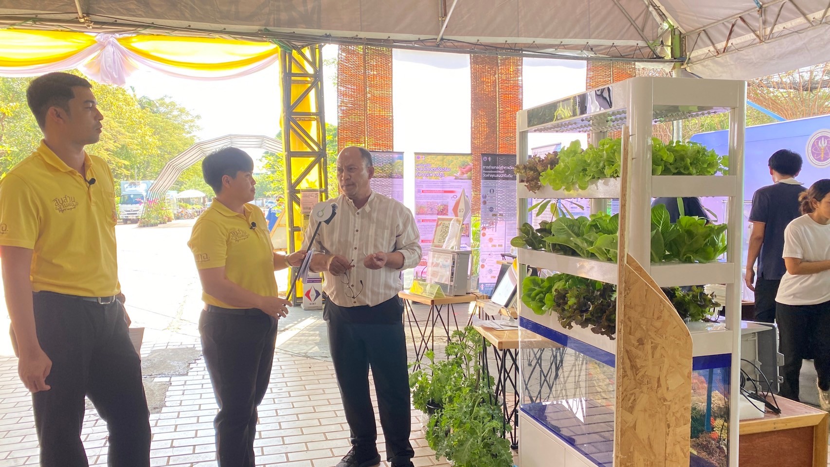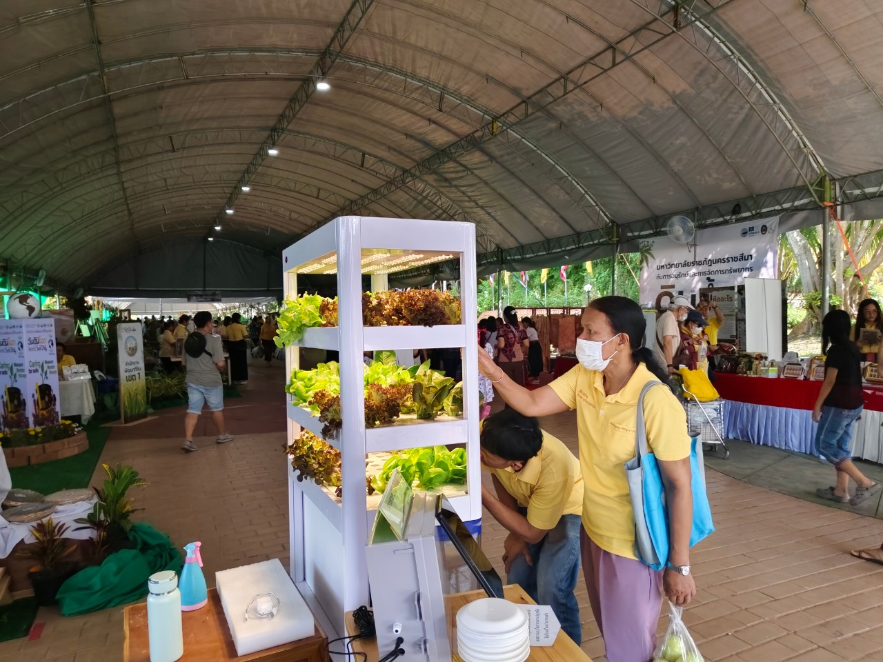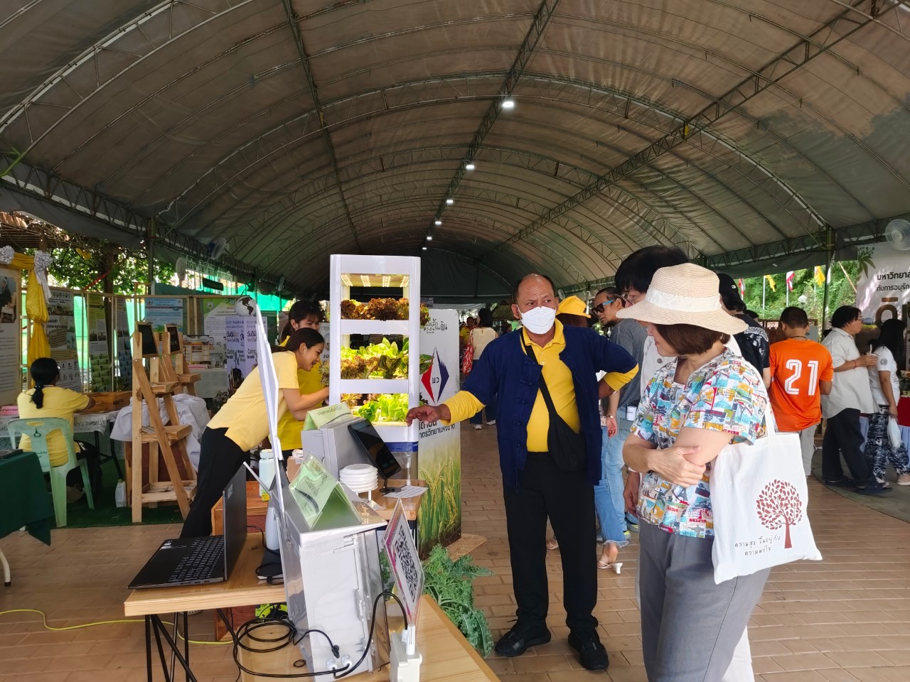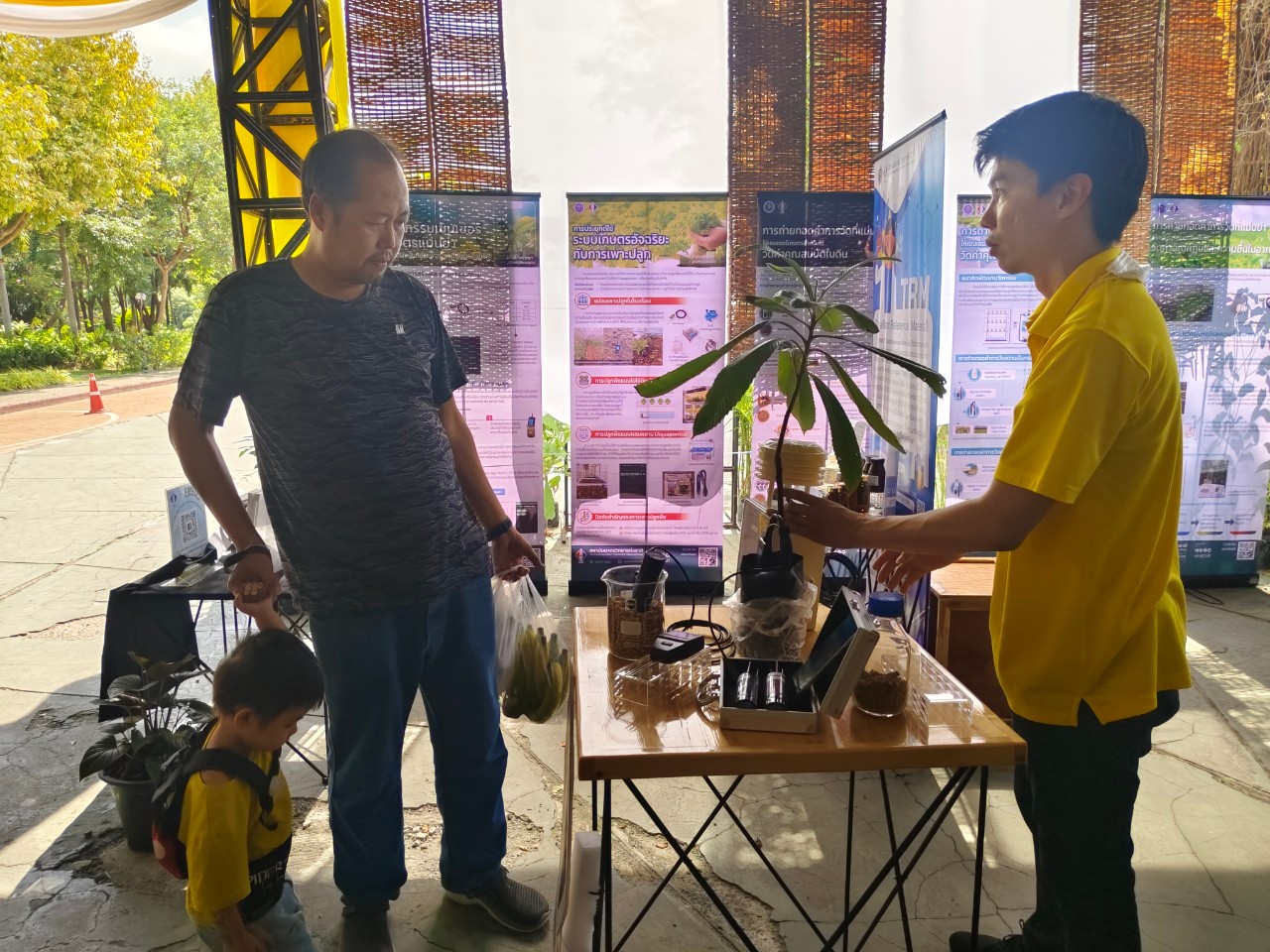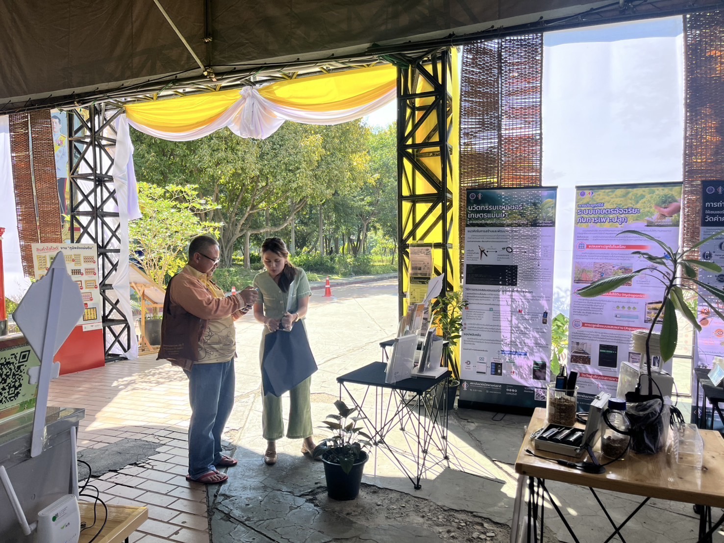 ในการนี้ น.ส.จรวยรัตน์ เหย่ากุลบดี หัวหน้าฝ่ายมาตรวิทยาอุณหภูมิและแสง พร้อมด้วย นายพิเชษ วงษ์นุช หัวหน้ากลุ่มงานมาตรฐานปฐมภูมิอุณหภูมิ และนักมาตรวิทยา มว. เข้าร่วมกิจกรรมและแสดงผลงานนิทรรศการวิชาการ เรื่อง “เซนเซอร์เกษตรแม่นยำเพื่อการเพิ่มคุณภาพและผลผลิตทางการเกษตร” ภายใต้กรอบแนวคิด “การเพิ่มผลผลิตพืชเกษตรที่มีคุณภาพด้วยปัจจัยการผลิตที่น้อยและยั่งยืนด้วยการใช้เทคโนโลยี” โดยเป็นการนำกระบวนการวัดทางมาตรวิทยามาประยุกต์ใช้ในงานด้านเกษตร ซึ่งจะช่วยให้เกษตรกรมีเครื่องมือที่ใช้ควบคุมปัจจัยการเพาะปลูกต่างๆ ได้เที่ยงตรงแม่นยำ พร้อมข้อมูลการเพาะปลูกที่จะช่วยพัฒนาเกษตรกรให้สามารถปลูกพืชที่มีคุณภาพและปริมาณผลผลิตที่ดีขึ้น
