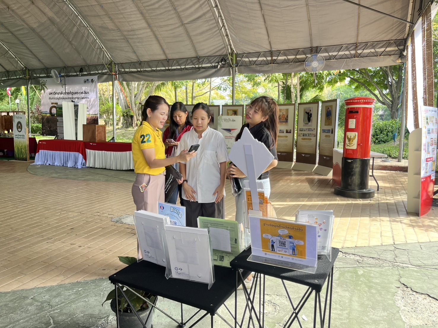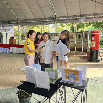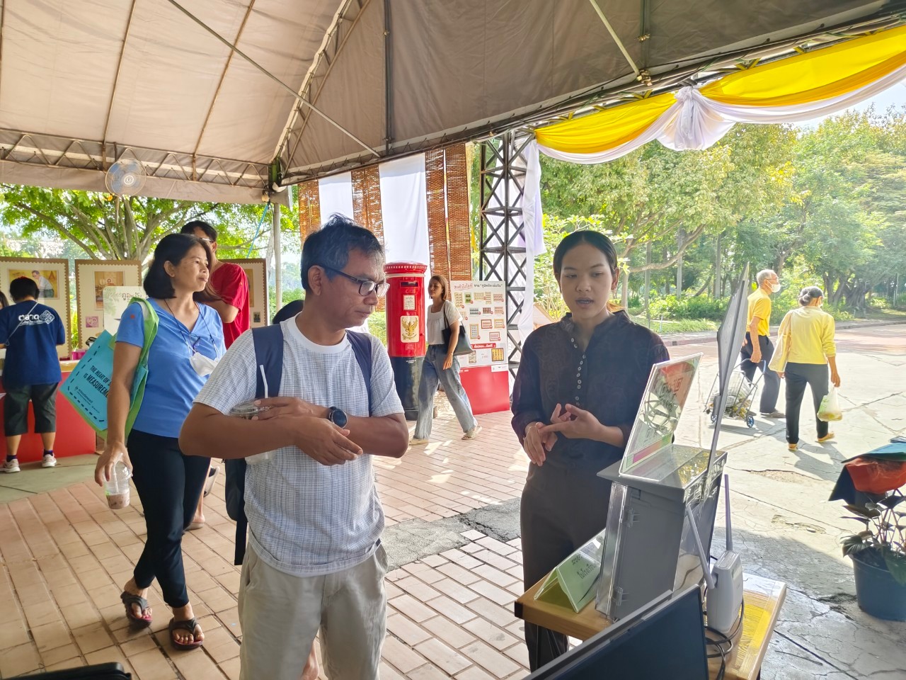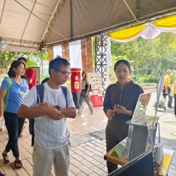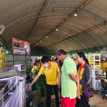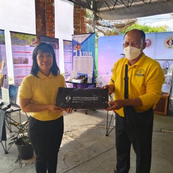 - น.ส.จรวยรัตน์ เหย่ากุลบดี ให้การต้อนรับประธานในพิธีฯ เยี่ยมชม นิทรรศการ มว.