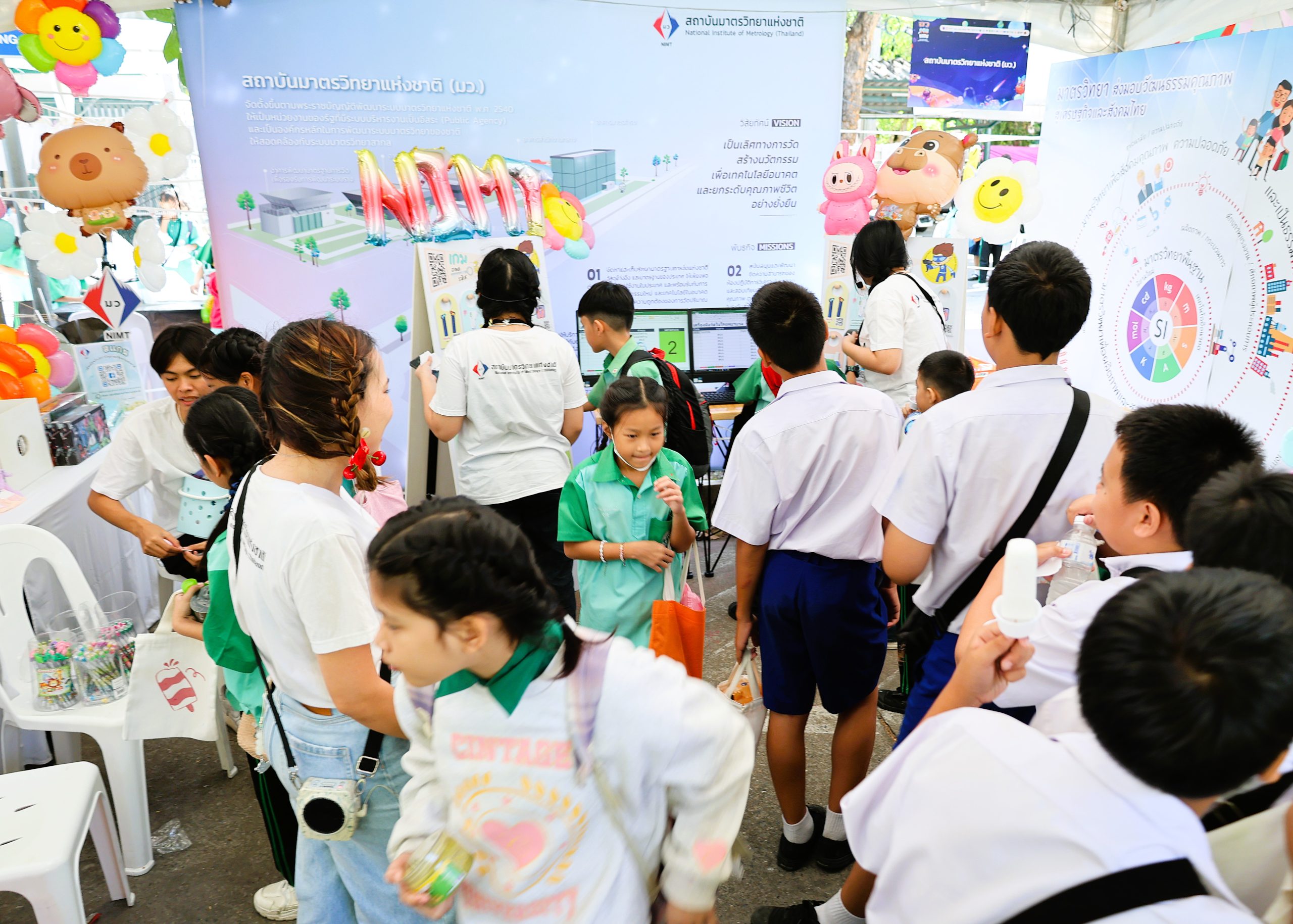 ในปีนี้ มว. ได้จัดกิจกรรมส่งเสริมการเรียนรู้ ภายใต้แนวคิด “หนูน้อยนักคิด…มาตรวิทย์ มาตรวัด” ที่พาน้องๆ ไปรู้จักเครื่องมือวัดในชีวิตประจำวัน ผ่านเกม “ถอดรหัส QR Code” ที่สอดแทรกความรู้ควบคู่ไปกับการเล่นเกม เพื่อให้เด็กและเยาวชน มีความรู้ความเข้าใจเบื้องต้นเกี่ยวกับงานด้านการวัด และสามารถเลือกใช้เครื่องมือวัดได้อย่างเหมาะสมกับการดำเนินชีวิตประจำวัน อาทิ เครื่องมือวัดด้านอุณหภูมิ ความยาว และนํ้าหนัก เป็นต้น นอกจากนี้ ยังได้ร่วมฝึกสมองกับเกม crossword และเกมเขาวงกตมาตรวิทยา ที่สอดแทรกสาระความรู้เกี่ยวกับคำศัพท์ด้านมาตรวิทยา และหน่วยวัด SI ทั้ง 7 หน่วยลงไปด้วย