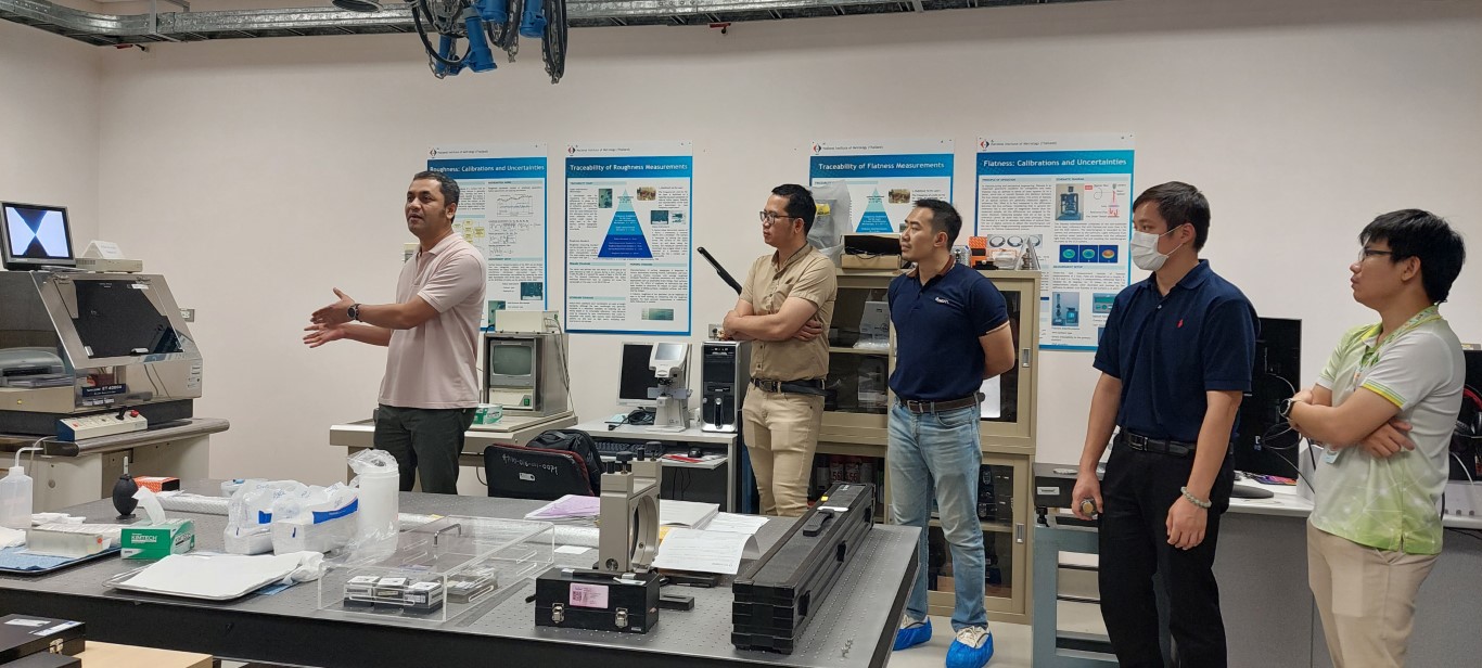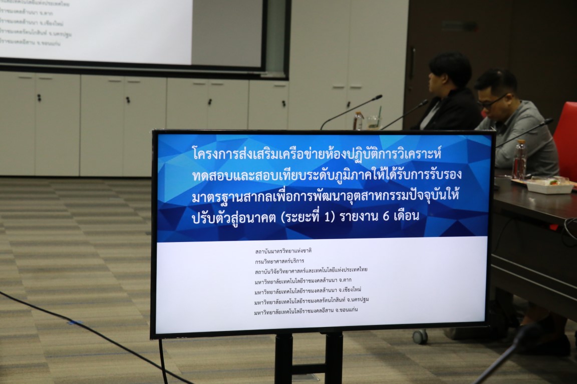 พล.ต.ท.นพ.พรชัย สุธีรคุณ ผู้อำนวยการ มว. พร้อมด้วย ดร.จริยา บัวเจริญ นักมาตรวิทยาเชี่ยวชาญ ฝ่ายมาตรวิทยามิติ (หัวหน้าโครงการ) กล่าวต้อนรับผู้เข้าร่วมประชุมติดตามความก้าวหน้าผลการดำเนินงานโครงการส่งเสริมเครือข่ายห้องปฏิบัติการทดสอบและสอบเทียบระดับภูมิภาคให้ได้รับการรับรองมาตรฐานสากลเพื่อการพัฒนาอุตสาหกรรมอย่างยั่งยืน (ระยะที่ 1) (โครงการย่อยที่ 1) รวมทั้งชี้แจงวัตถุประสงค์ของโครงการรายงานความก้าวหน้าและภาพรวมของโครงการ ซึ่งการจัดประชุมในครั้งนี้เพื่อติดตามความก้าวหน้าการดำเนินงานตามระยะเวลาและเป้าหมายที่กำหนดร่วมกับผู้ปฏิบัติงานที่เกี่ยวกับโครงการของมหาวิทยาลัยเทคโนโลยีราชมงคลทั้ง 4 แห่ง ประกอบด้วยมหาวิทยาลัยเทคโนโลยีราชมงคลรัตนโกสินทร์ จ.นครปฐม มหาวิทยาลัยเทคโนโลยีราชมงคลอีสาน วิทยาเขตขอนแก่น มหาวิทยาลัยเทคโนโลยีราชมงคลล้านนาตาก และมหาวิทยาลัยเทคโนโลยีราชมงคลล้านนาเชียงใหม่ ซึ่งนอกจากการประชุมติดตามความก้าวหน้าแล้ว ยังได้จัดให้มีการเยี่ยมชมห้องปฏิบัติการฝ่ายมาตรวิทยาเชิงกล และห้องปฏิบัติการฝ่ายมาตรวิทยามิติของสถาบันมาตรวิทยาแห่งชาติแล้ว ยังได้มีการจัดให้ไปเยี่ยมชมห้องปฏิบัติการ ศูนย์ทดสอบมาตรฐานระบบขนส่งทางราง (ศทร.) ณ สถาบันวิจัยวิทยาศาสตร์และเทคโนโลยีแห่งประเทศไทย (วว.) อีกด้วย โดยกิจกรรมทั้งหมดจัดขึ้น ณ เทคโนธานี คลองห้า จังหวัดปทุมธานี