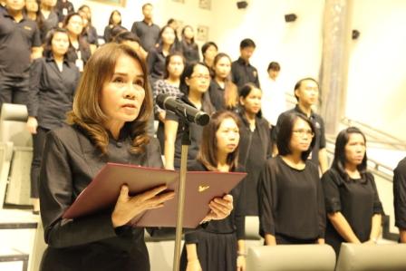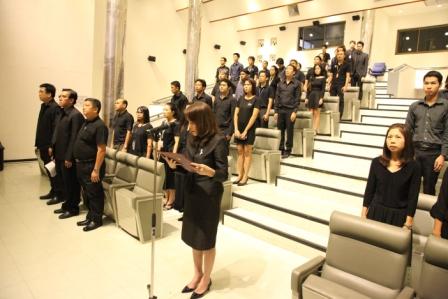 นางอัจฉรา เจริญสุข รองผู้อำนวยการ (1) มว. เป็นประธานในพิธี รวมพลังแห่งความภักดีเพื่อน้อมถวายพระบาทสมเด็จพระเจ้าอยู่หัว รัชกาลที่ 9 ในโอกาสนี้ผู้บริหารและพนักงาน มว. ร่วมกล่าวคำถวายสัตย์ปฏิญาณเพื่อแสดงความจงรักภักดี และรำลึกถึงพระมหากรุณาธิคุณที่ได้ปกเกล้าปกกระหม่อม ให้ความร่มเย็นเป็นสุขแก่พสกนิกรชาวไทย ตลอดมาเป็นเวลาถึง 70 ปี แม้บัดนี้จะเสด็จสู่สวรรคาลัยแล้ว แต่ก็ยังทรงสถิตอยู่ในใจของปวงประชาชนชาวไทยอย่างไม่มีวันลืมเลือน พร้อมทั้งจะเป็นคนดีมีคุณธรรม เป็นพลังที่ยั่งยืนในการพัฒนาประเทศต่อไป แล้วจึงร่วมร้องเพลงสรรเสริญพระบารมีโดยพร้อมเพรียงกัน ณ อาคารสำนักงานกลาง มว. จ.ปทุมธานี
