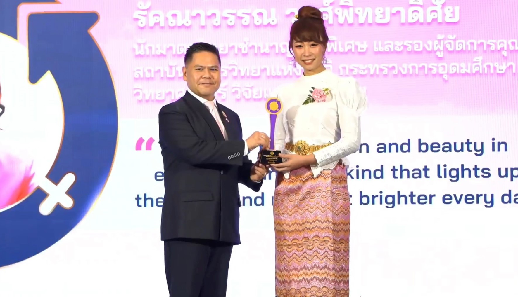 สืบเนื่องจากวันที่ 8 มีนาคมของทุกปี เป็นวันสตรีสากล กระทรวงการพัฒนาสังคมและความมั่นคงของมนุษย์ จัดโดย คณะกรรมการดําเนินงานวันสตรีสากล กรมกิจการสตรีและสถาบันครอบครัว ได้พิจารณาคัดเลือกสตรี บุคคล และหน่วยงานองค์กรดีเด่นสาขาต่างๆ ในแต่ละประเภท เพื่อยกย่องเชิดชูเกียรติและประกาศเกียรติคุณสตรี บุคคล และหน่วยงานองค์กรดีเด่น และสตรีผู้ทำคุณประโยนช์ต่อสังคมและประเทศชาติ เนื่องในวันสตรีสากล ประจําปี 2568 ภายใต้แนวคิด “3 ทศวรรษปฏิญญาปักกิ่งฯ : โอกาสและความท้าทายสู่ความเสมอภาคของสตรีและเด็กหญิง” จึงเป็นโอกาสที่ดีต่อสถาบันมาตรวิทยาแห่งชาติ ที่ผู้บริหารให้ความสำคัญในการสนับสนุนบทบาทนักมาตรวิทยาหญิงไทย โดยในปีนี้ผู้ที่ได้รับการเชิดชูเกียรติและรับโล่รางวัล ได้แก่ นางสาวรัคณาวรรณ วงศ์พิทยาดิศัย สาขาสตรีดีเด่นในเวที/เครือข่ายระดับสากล ประเภทบุคคลภาครัฐ รางวัลเนื่องในวันสตรีสากลอันทรงเกียรตินี้เป็นการสนับสนุนความมุ่งมั่นตั้งใจจริงของสตรีที่ดีเด่นด้านต่างๆ ที่มีบทบาทและมีส่วนร่วมในการพัฒนาเป็นผู้ทำคุณประโยชน์ต่อสังคมและประเทศชาติ การจัดกิจกรรมพิธีมอบโล่ประกาศเกียรติคุณแก่สตรี บุคคล และหน่วยงานองค์กรดีเด่น ณ ห้องประชุมปกรณ์ อังศุสิงห์ ชั้น 2 อาคารกรมพัฒนาสังคมและสวัสดิการ กระทรวงการพัฒนาสังคมและความมั่นคงของมนุษย์ กรุงเทพฯ