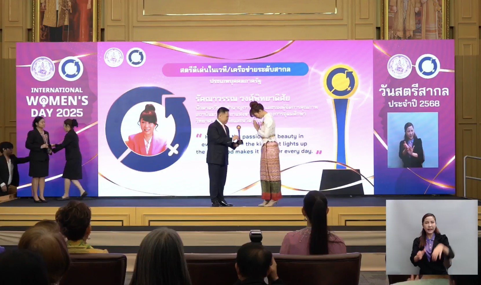 - บรรยากาศพิธีผู้ที่ได้รับการเชิดชูเกียรติและรับโล่รางวัล เนื่องในวันสตรีสากล ประจําปี 2568
