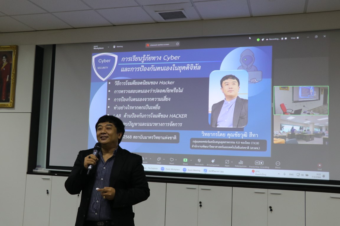 กระทรวงการอุดมศึกษา วิทยาศาสตร์ วิจัยและนวัตกรรม (อว.) โดยสถาบันมาตรวิทยาแห่งชาติ (มว.) จัดอบรมการเรียนรู้ภัยทางไซเบอร์ และการป้องกันตนเองในยุคดิจิทัล บรรยายให้ความรู้แก่พนักงานสถาบันโดยวิทยากรจาก สำนักงานพัฒนาวิทยาศาสตร์และเทคโนโลยีแห่งชาติ (สวทช.) หรือ NSTDA คุณชัยวุฒิ สีทา โดยมีวัตถุประสงค์เพื่อให้พนักงานได้มีความรู้ ความเข้าใจภัยในรูปแบบต่างๆ ทางไซเบอร์ การตั้งค่าการใช้งานอินเทอร์เน็ต รู้จักวิธีป้องกันภัยคุกคามทางไซเบอร์ รวมถึงวิธีการป้องกันตนเองให้ปลอดภัย โดยการอบรมดังกล่าวจัดขึ้นทั้งในรูปแบบออนไลน์ และออนไซต์ ณ อาคารมาตรธำรง (มว.) คลองห้า จังหวัดปทุมธานี