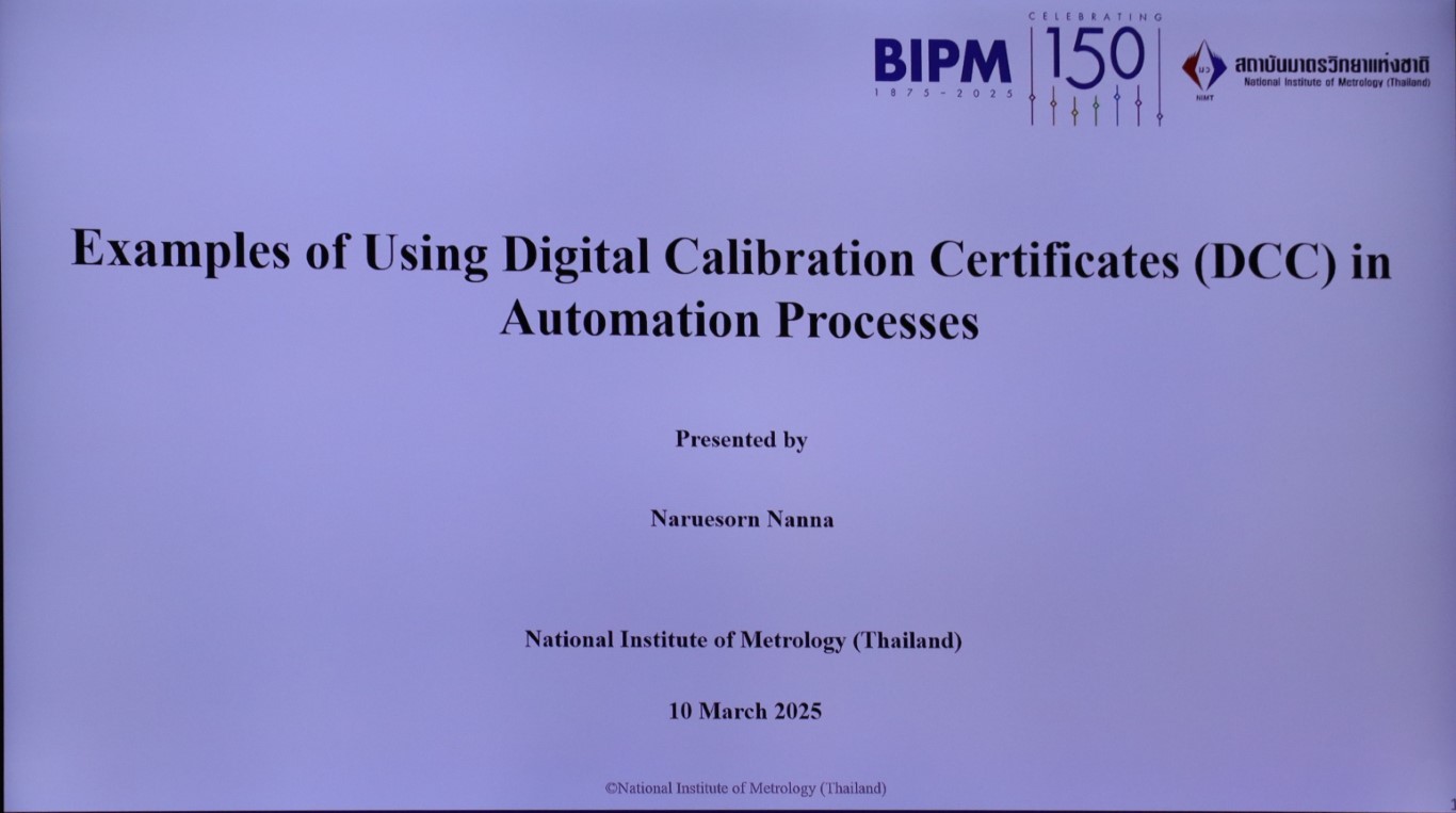 ในด้านเศรษฐกิจอุตสาหกรรม เทคโนโลยีดิจิทัลและการเปลี่ยนแปลงด้านดิจิทัลส่งผลให้เกิดการเปลี่ยนแปลงผลิตภัณฑ์ และกระบวนการผลิตอย่างมากและรวดเร็ว การเปลี่ยนแปลงนี้เป็นปัจจัยที่ผลักดันให้ทางสถาบันมาตรวิทยาแห่งชาติ (มว.) ต้องปรับตัวและเปลี่ยนแปลงเพื่อรองรับกระบวนการด้านดิจิทัล และเพื่อรักษาความสามารถในการแข่งขันของประเทศ จึงจำเป็นต้องเปลี่ยนแปลงเพื่อให้สามารถเชื่อมโยงกับระบบอื่นๆ ของภาคเศรษฐกิจและอุตสาหกรรมได้อย่างไร้ร้อยต่อ ซึ่งจะเป็นการเพิ่มประสิทธิภาพให้แก่ระบบอุตสาหกรรมโดยรวม โครงการมาตรวิทยาเพื่อการเปลี่ยนผ่านสู่เศรษฐกิจดิจิทัล สถาบันมาตรวิทยาแห่งชาติ จึงนำมาสู่การจัดประชุมหารือระหว่างทาง มว. และห้องปฏิบัติการสอบเทียบภาคเอกชน ซึ่งเป็นผู้มีส่วนได้เสียประโยชน์ในการเปลี่ยนแปลงรูปแบบการออกใบรับรองผลการสอบเทียบของทาง มว. เพื่อให้เกิดการพัฒนา และปรับปรุงให้เกิดประโยชน์สูงสุด โดยการจัดประชุมในครั้งนี้เพื่อนำเสนอผลการดำเนินงานการพัฒนาระบบมาตรวิทยาสู่รูปแบบดิจิทัล เช่น DCC Web portal, ระบบอัตโนมัติ เป็นต้น และเพื่อรับฟังความเห็นและหารือแนวทางการพัฒนาแพลตฟอร์มการสร้างใบรับรองผลการสอบเทียบแบบดิจิทัลจากภาคเอกชน การประชุมดังกล่าวจัดขึ้น ณ อาคารมาตรธำรง (มว.) คลองห้า จังหวัดปทุมธานี