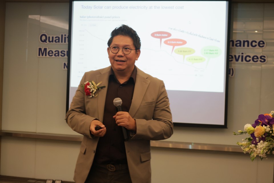 • ดร.มานิตย์ สีแป้น ผู้เชี่ยวชาญจากศูนย์พัฒนามาตรฐานและทดสอบระบบเซลล์แสงอาทิตย์ บรรยายในหัวข้อ “Energy rating according IEC 61853”