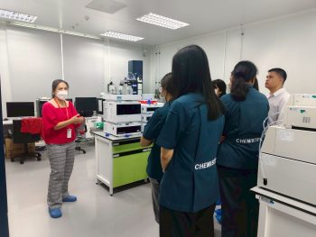 - ดร.กิตติยา เชียร์แมน หัวหน้าฝ่ายมาตรวิทยาเคมีและชีวภาพ ให้การต้อนรับ อาจารย์ และนักศึกษา จากมหาวิทยาลัยมหิดล