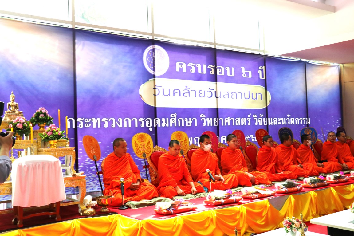 กระทรวงการอุดมศึกษา วิทยาศาสตร์ วิจัยและนวัตกรรม (อว.) จัดพิธีทำบุญตักบาตรอาหารแห้งและถวายภัตตาหารเช้าแด่พระสงฆ์ จำนวน 10 รูป จากวัดเบญจมบพิตรดุสิตวนารามราชวรวิหาร เนื่องในวันคล้ายวันสถาปนากระทรวง อว. โดยมีนางสาวศุภมาส อิศรภักดี รัฐมนตรีว่าการกระทรวง อว. พร้อมด้วยผู้บริหารหน่วยงาน ข้าราชการ พนักงาน และเจ้าหน้าที่ เข้าร่วมพิธี ในการนี้ พล.ต.ท.นพ.พรชัย สุธีรคุณ ผู้อำนวยการ สถาบันมาตรวิทยาแห่งชาติ (มว.) พร้อมด้วยพนักงาน ได้เข้าร่วมในพิธีดังกล่าวด้วย ณ อาคารอุดมศึกษา 2 สป.อว. (ศรีอยุธยา)