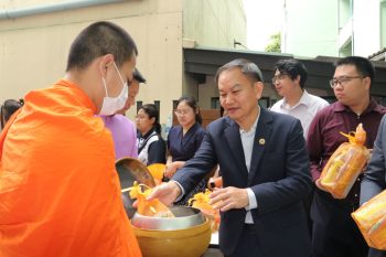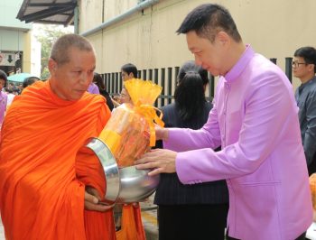 - บรรยากาศในการใส่บาตร