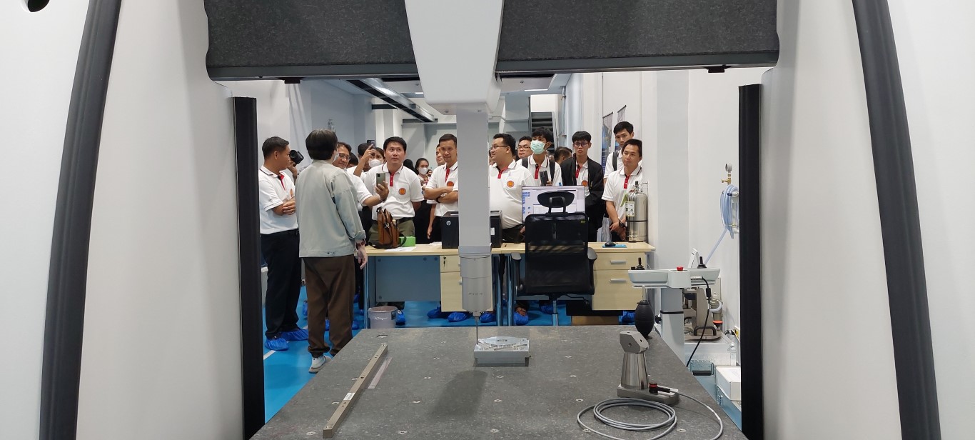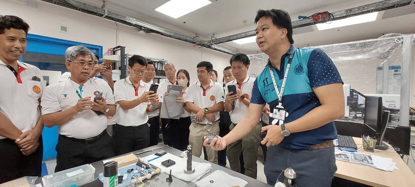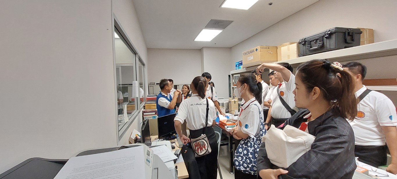 กระทรวงการอุดมศึกษา วิทยาศาสตร์ วิจัยและนวัตกรรม (อว.) โดยสถาบันมาตรวิทยาแห่งชาติ (มว.) คุณศมน เพี้ยงบางยาง หัวหน้าฝ่ายมาตรวิทยามิติ พร้อมด้วย ดร.นรินทร์ จันทวงศ์ หัวหน้ากลุ่มงานมาตรวิทยานาโน ให้การต้อนรับ ผู้เข้าอบรม โครงการฝึกอบรมการสอบเทียบเครื่องมือวัดในงานมาตรวิทยาด้านมิติ ให้กับครูผู้สอนประเภทวิชาช่างอุตสาหกรรม ที่จัดโดยสำนักพัฒนาสมรรถนะครูและบุคลากรอาชีวศึกษา สำนักงานคณะกรรมการอาชีวศึกษา ในโอกาสเข้าเยี่ยมชมห้องปฏิบัติการ มว. เพื่อศึกษาดูงานด้านเทคโนโลยีมาตรวิทยาด้านมิติ เป็นการสร้างประสบการณ์ การเรียนรู้ให้กับครู้ผู้เข้ารับการฝึกอบรม ได้นำไปปรับใช้ให้เป็นประโยชน์ต่อการจัดการเรียนการสอนได้ต่อไป โดยกิจกรรมการต้อนรับ และเยี่ยมชมดังกล่าวจัดขึ้น ณ อาคารสำนักงานกลาง อาคารผดุงมาตร และอาคารพัฒนาระบบราง (มว.) คลองห้า จังหวัดปทุมธานี
