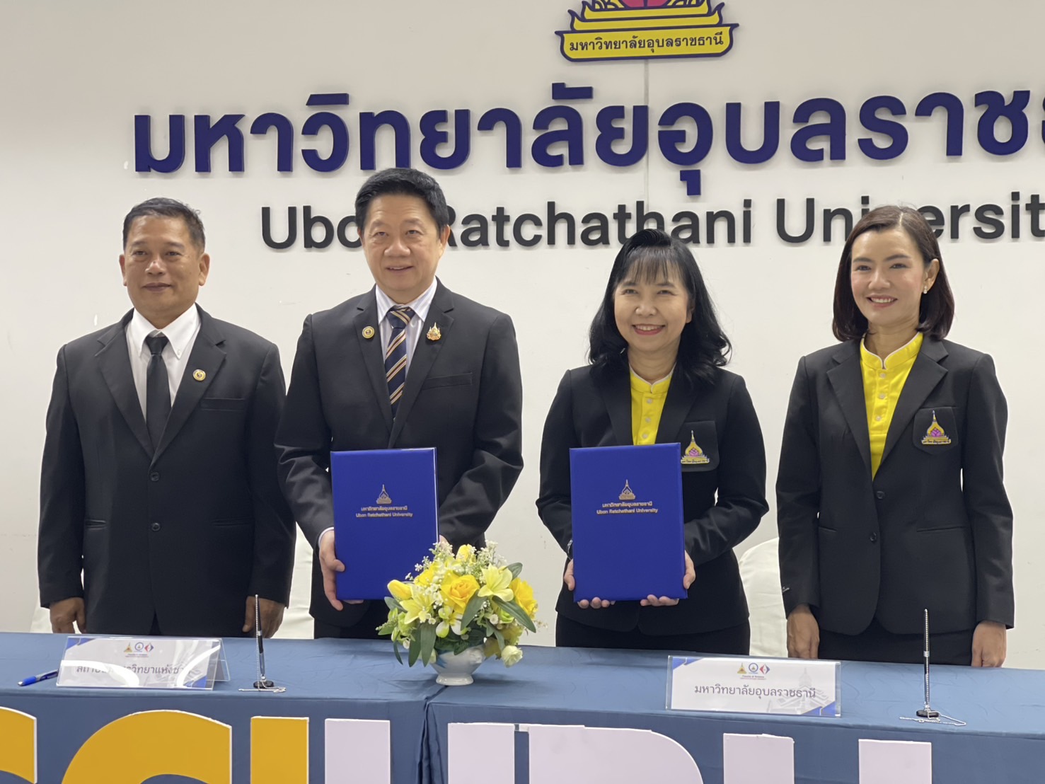 วันพฤหัสบดีที่ 5 มิถุนายน 2568 : พล.ต.ท. นพ.พรชัย สุธีรคุณ ผู้อำนวยการสถาบันมาตรวิทยาแห่งชาติ (มว.) และ รศ. ดร.ชุตินันท์ ประสิทธิ์ภูริปรีชา อธิการบดีมหาวิทยาลัยอุบลราชธานี ร่วมลงนามบันทึกข้อตกลงความร่วมมือทางวิชาการด้านมาตรวิทยาทางการแพทย์ โดยมีนายอนุสรณ์ ทนหมื่นไวย รองผู้อำนวยการ มว.พร้อมด้วย ศ.ดร.ศิริพร จึงสุทธิวงษ์ คณบดีคณะวิทยาศาสตร์ มหาวิทยาลัยอุบลราชธานี ลงนามเป็นสักขีพยาน โดยทั้งสองฝ่ายมีข้อตกลงร่วมกันในการดำเนินการด้านงานวิจัยพัฒนา นวัตกรรม หลักสูตรการศึกษา และการเรียนการสอนทางด้านมาตรวิทยาทางการแพทย์ และพัฒนาทรัพยากรบุคคลของทั้งสองฝ่ายและบุคลากรของประเทศให้มีความรู้ ความสามารถในด้านมาตรวิทยาทางการแพทย์ อันจะนำไปสู่การยกระดับคุณภาพของการวัดและมาตรฐานการวัดทางการแพทย์ให้เกิดขึ้นภายในประเทศอย่างเป็นรูปธรรม