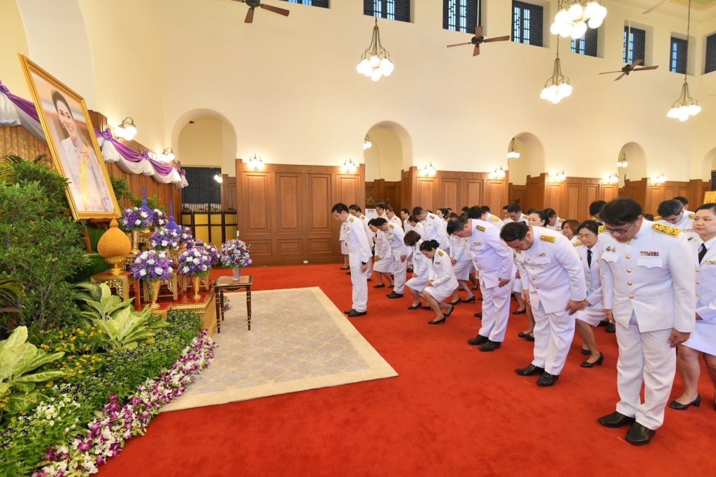 กระทรวงการอุดมศึกษา วิทยาศาสตร์ วิจัยและนวัตกรรม (อว.) โดยศ.ดร.ศุภชัย ปทุมนากุล ปลัดกระทรวงฯ พร้อมด้วยคณะผู้บริหาร อว. ร่วมถวายความเคารพพระฉายาลักษณ์สมเด็จพระนางเจ้าฯ พระบรมราชินี พร้อมถวายแจกันดอกไม้ และลงนามถวายพระพรชัยมงคล เนื่องในโอกาสวันเฉลิมพระชนมพรรษา ณ ศาลาสหทัยสมาคม พระบรมมหาราชวัง ในการนี้ พล.ต.ท.นพ.พรชัย สุธีรคุณ ผู้อำนวยการสถาบันมาตรวิทยาแห่งชาติ (มว.) เข้าร่วมในกิจกรรมดังกล่าวด้วย