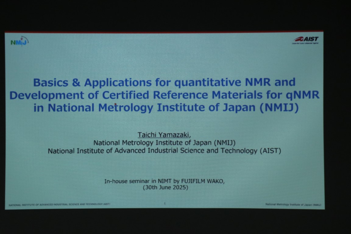 กระทรวงการอุดมศึกษา วิทยาศาตร์ วิจัยและนวัตกรรม (อว.) สถาบันมาตรวิทยาแห่งชาติ (มว.) โดยดร.กิตติยา เชียร์แมน หัวหน้าฝ่ายมาตรวิทยาเคมีและชีวภาพ ให้การต้อนรับผู้เชี่ยวชาญจาก National Metrology Institute of Japan : NMIJ, FUJIFILM Wako Pure Chemical Corporation, GK FINECHEM Co., Ltd. และผู้เข้าร่วมอบรมจากมหาวิทยาลัยบูรพา ในโอกาสบรรยายให้ความรู้แก่บุคลากรให้ได้รับความรู้ ความเข้าใจ และสามารถนำเทคนิคเอ็นเอ็มอาร์เชิงปริมาณ (qNMR) ในการวิเคราะห์ทางเคมีไปประยุกต์ใช้ในการทำงานได้อย่างมีประสิทธิภาพ ซึ่งกิจกรรมดังกล่าวเป็นการถ่ายทอดเทคโนโลยีด้านการวัดเกี่ยวกับสมุนไพร และถือเป็นส่วนหนึ่งในผลผลิตส่งมอบในโครงการพัฒนามาตรฐานสมุนไพรเพื่อสร้างเศรษฐกิจให้กับประเทศอีกด้วย โดยได้รับเกียรติจาก Dr.Taichi YAMAZAKI, Senior Researcher, Organic Primary Standards Group, NMIJ; Dr. Toru MIURA, Head of Reference Material Group และ Dr. Shigeaki IMAZEKI, Manager จาก FUJIFILM Wako Pure Chemical Corporation ประเทศญี่ปุ่น บรรยายให้ความรู้แก่ผู้สนใจ โดยกิจกรรมการอบรมและประชุมความร่วมมือ หัวข้อดังกล่าว จัดขึ้น ณ อาคารมาตรธำรง (มว.) คลองห้า คลองหลวง จังหวัดปทุมธานี