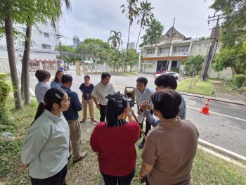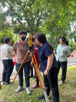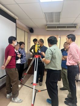 กระทรวงการอุดมศึกษา วิทยาศาสตร์ วิจัยและนวัตกรรม (อว.) สถาบันมาตรวิทยาแห่งชาติ (มว.) โดยคุณศมน เพี้ยงบางยาง หัวหน้าฝ่ายมาตรวิทยามิติ พร้อมด้วยนักมาตรวิทยาจากฝ่ายมาตรวิทยามิติ และดร.ทยาทิพย์ ทองตัน นักมาตรวิทยา ฝ่ายมาตรวิทยาไฟฟ้า ได้ไปศึกษาดูงานสำรวจการทำแผนที่ภูมิประเทศโดยใช้กล้องประมวลผลรวม (Total Station) โดยมีวัตถุประสงค์เพื่อการจัดทำแนวทางสำหรับวิธีการวัด การประมวลผลค่าความถูกต้อง และการหาค่าความไม่แน่นอนของผลการวัดตามมาตรฐานสากล สำหรับเครื่องมือที่ใช้ในการสำรวจ การรังวัด และทำแผนที่ โดยกิจกรรมการศึกษาดูงานดังกล่าวถูกจัดขึ้น ณ สาขาวิศวกรรมสำรวจ ภาควิชาวิศวกรรมโยธา มหาวิทยาลัยเทคโนโลยีราชมงคลกรุงเทพ จังหวัดกรุงเทพฯ