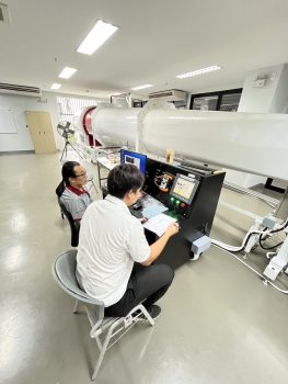 กระทรวงการอุดมศึกษา วิทยาศาสตร์ วิจัยและนวัตกรรม (อว.) สถาบันมาตรวิทยาแห่งชาติ (มว.) โดยดร.จีระศักดิ์ พิทักษ์อรรณพ และดร.ขนิษฐา ลี่แตง นักมาตรวิทยาจากกลุ่มงานกลศาสตร์ของไหล ฝ่ายมาตรวิทยาเชิงกล พร้อมด้วยนักศึกษาจากจุฬาลงกรณ์มหาวิทยาลัย เข้าร่วมทดลองและวิจัยร่วมกับ ผศ.ดร.ชินภัทร ทิพโยภาส และอาจารย์ศักดิ์ดาเรศ พรหมยะกลาง จากภาควิชาวิศวกรรมการบินและอวกาศ คณะวิศวกรรมศาสตร์ มหาวิทยาลัยเกษตรศาสตร์ ด้านการสอบเทียบเครื่องวัดความเร็วลม ประเภท Cup Anemometer ความร่วมมือในครั้งนี้ถือเป็นอีกหนึ่งก้าวสำคัญในการบูรณาการองค์ความรู้ระหว่างภาคการศึกษา และหน่วยงานมาตรวิทยาระดับชาติ เพื่อเสริมสร้างความแม่นยำในการวัดทางวิศวกรรม รวมถึงการพัฒนาขีดความสามารถของบุคลากร และนักศึกษาในด้านการวิจัยเชิงประยุกต์ กิจกรรมดังกล่าวจัดขึ้น ณ ห้องปฏิบัติการอุโมงค์ลม ภาควิชาวิศวกรรมการบินและอวกาศ โดยใช้อุโมงค์ลมชนิด Eiffel ซึ่งเป็นอุโมงค์ลมแบบวงจรเปิด (Open-loop) ขนาด 60 x 60 เซนติเมตร ในการทดลองศึกษา ผลกระทบจาก Blockage Effect ที่มีต่อเครื่องมือวัดความเร็วลม ในช่วงพิสัยความเร็วลมระหว่าง 4 ถึง 20 เมตรต่อวินาที (m/s)