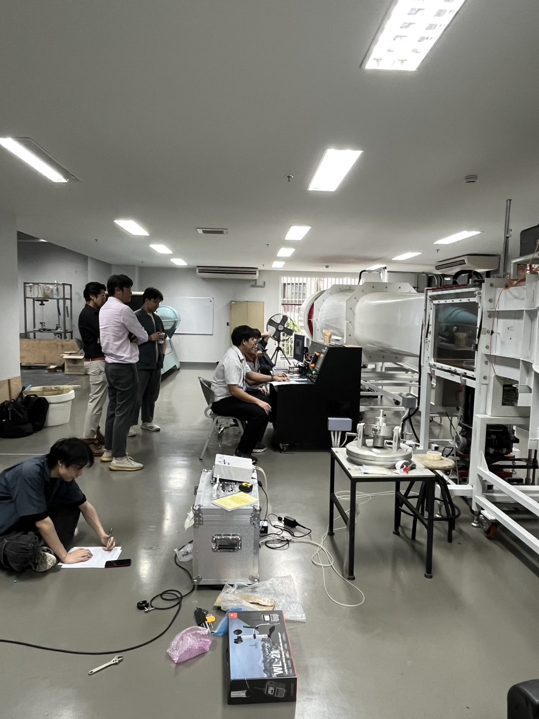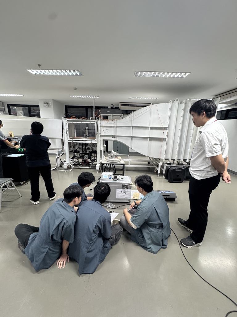 - ผศ.ดร. ชินภัทร ทิพโยภาส และอาจารย์ศักดิ์ดาเรศ พรหมยะกลาง ภาควิชาวิศวกรรมการบินและอวกาศ ม.เกษตร ให้การต้อนรับ ดร.จิระศักดิ์ พิทักษ์อรรณพ และดร.ชนิษฐา ลี่แตง นักมาตรวิทยาจากกลุ่มงานกลศาสตร์ของไหล ฝ่ายมาตรวิทยาเชิงกล มว. พร้อมด้วยนักศึกษาจุฬาลงกรณ์มหาวิทยาลัย
