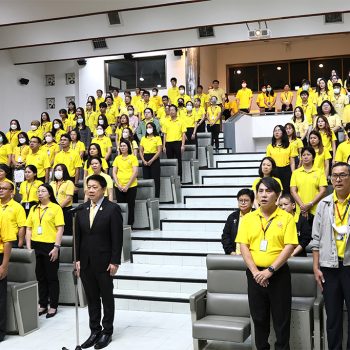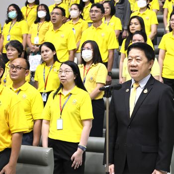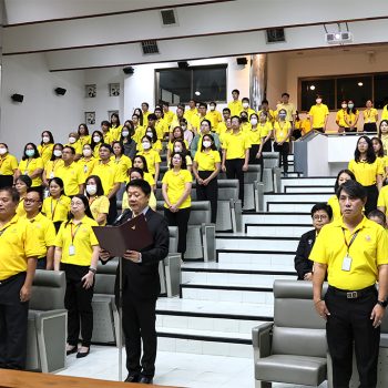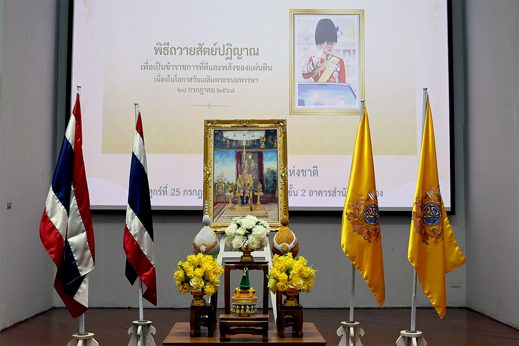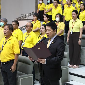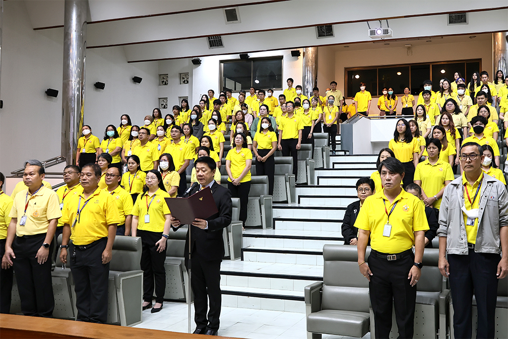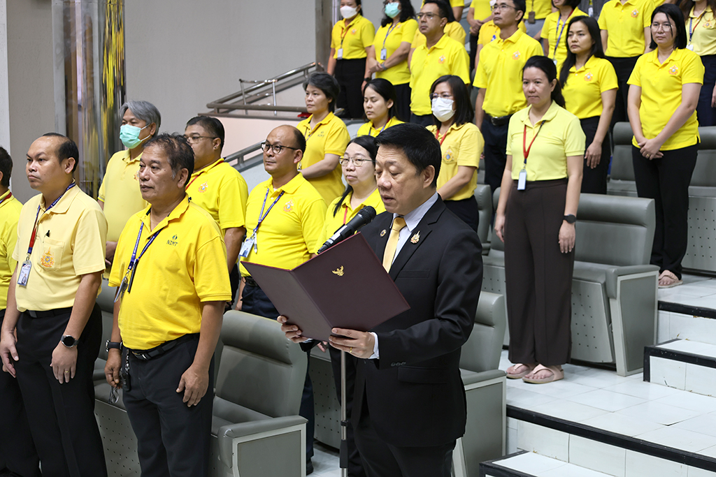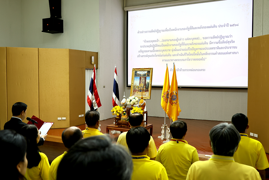 ต่อจากนั้น ได้นำคณะผู้บริหาร และพนักงาน กล่าวคำถวายสัตย์ปฏิญาณ เพื่อเป็นพนักงานของรัฐที่ดีและพลังของแผ่นดิน ประจำปี 2568 เพื่อแสดงความมุ่งมั่นแน่วแน่ที่จะประพฤติปฏิบัติตนเป็นพนักงานของรัฐที่ดีและพลังของแผ่นดิน มีความซื่อสัตย์สุจริต เจริญรอยตามเบื้องพระยุคลบาท มุ่งมั่นแน่วแน่แก้ไขปัญหาของประเทศชาติและประชาชน สร้างสรรค์คุณประโยชน์แก่แผ่นดิน และดำเนินชีวิตโดยยึดมั่นในหลักธรรมคำสอนแห่งศาสนาตามแนวทางพระบรมราโชวาทตลอดไป