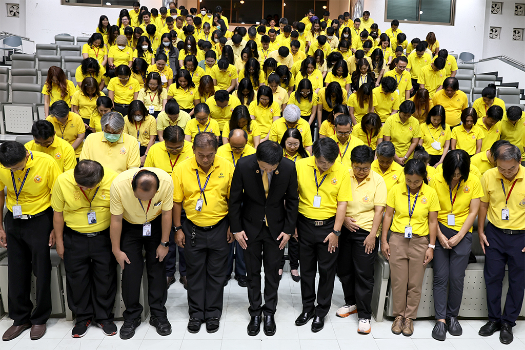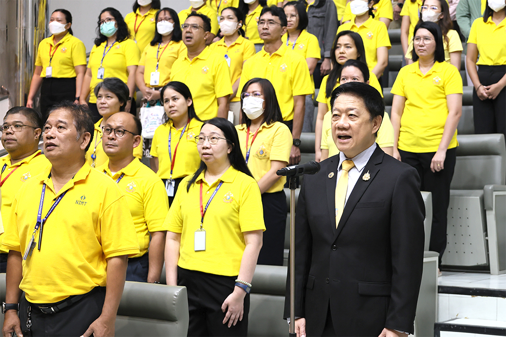 วันที่ 25 กรกฎาคม 2568 – พล.ต.ท. นพ.พรชัย สุธีรคุณ ผู้อำนวยการ มว. นำคณะผู้บริหาร และพนักงาน มว. เข้าร่วมพิธีถวายพระพรชัยมงคล และพิธีถวายสัตย์ปฏิญาณเพื่อเป็นข้าราชการที่ดีและพลังของแผ่นดิน เนื่องในโอกาสวันเฉลิมฉลองพระชนมพรรษา 28 กรกฎาคม 2568 ณ อาคารสำนักงานกลาง มว. เทคโนธานี คลองห้า จ.ปทุมธานี