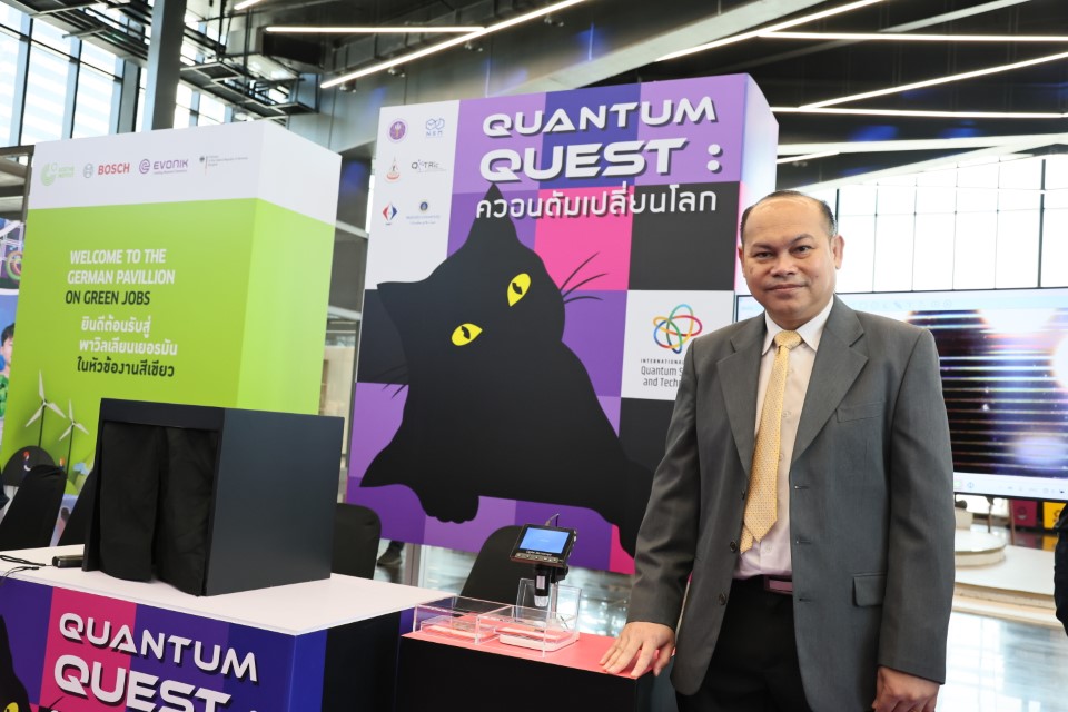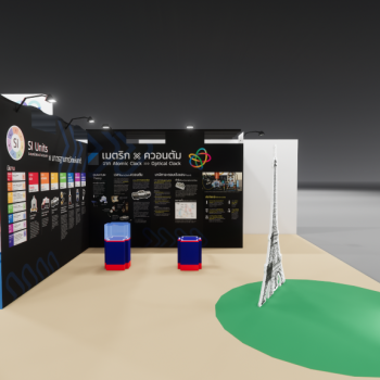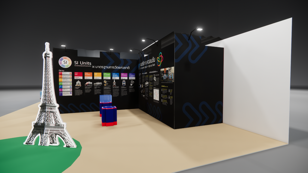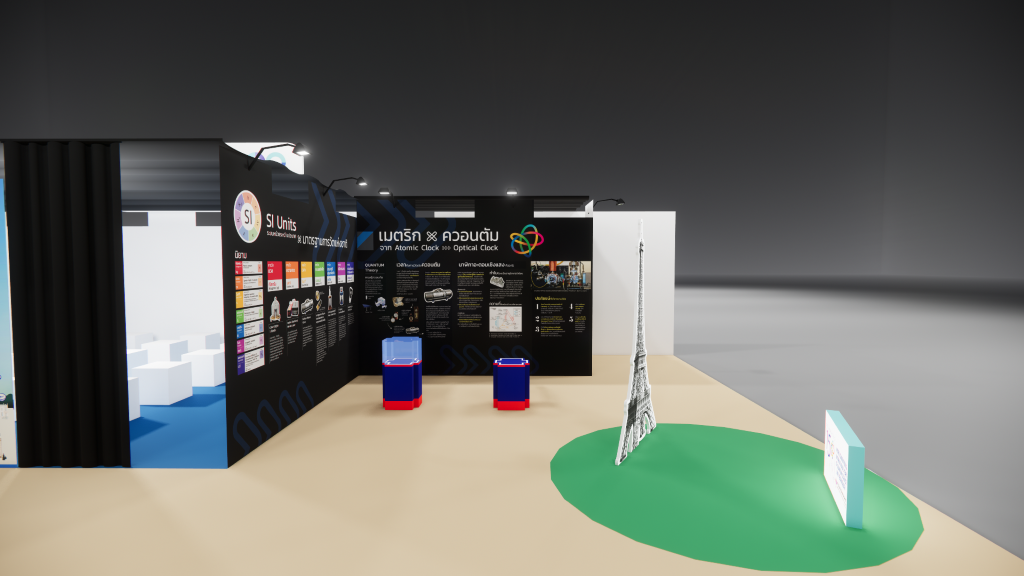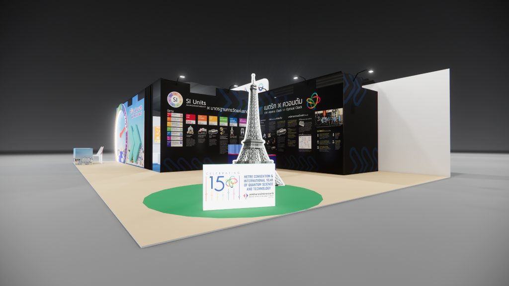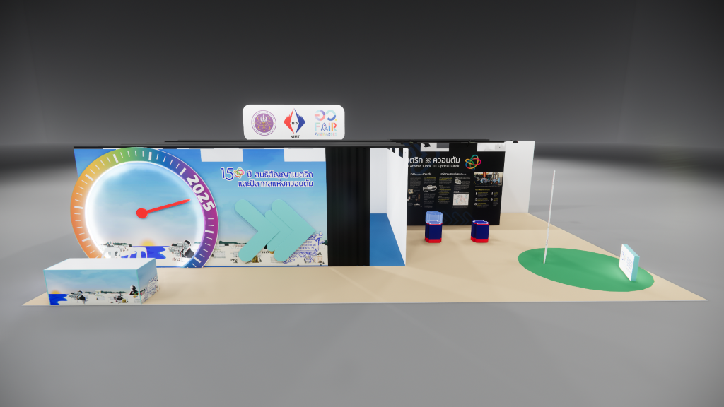 สถาบันมาตรวิทยาแห่งชาติ (มว.) ได้เข้าร่วมงาน อว.แฟร์ ZONE E: LIVING DISTRICT นวัตกรรมเพื่อชีวิตความเป็นอยู่ที่ดีในอนาคต ภายใต้กิจกรรมหัวข้อ “150 ปี สนธิสัญญาเมตริก และปีสากลแห่งควอนตัม ” นำเสนอเรื่องราวผ่านวีดิทัศน์ เรื่อง “เมตริก…ในมิติแห่งกาลเวลา” และบอร์ดประชาสัมพันธ์ ที่เชื่อมโยงประวัติศาสตร์และความเป็นมาเกี่ยวกับการวัด กับระบบหน่วยระหว่างประเทศ (SI Units) สู่การกำหนด “มาตรฐานการวัดแห่งชาติ” ของประเทศไทย รวมถึงเชื่อมโยงต่อไปยังเทคโนโลยีควอนตัม และงานวิจัยเชิงควอนตัมของ มว. เรื่อง “นาฬิกาอะตอมเชิงแสงด้วยไอออนเย็นของธาตุอิตเทอร์เบียม” เพื่อสร้างความตระหนักถึงความสำคัญของงานด้านมาตรวิทยา และสามารถนำความรู้ ความเข้าใจด้านมาตรวิทยาไปประยุกต์ใช้ประโยชน์ในการพัฒนาคุณภาพชีวิต เศรษฐกิจ และสังคมไทย อย่างยั่งยืนต่อไป