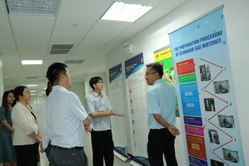 - นางสาวชัตติยานี กลิ่นมาลัย เจ้าหน้าที่วิเทศสัมพันธ์ และ ดร.บรรฑูรย์ ละอองศรี หัวหน้ากลุ่มงานวิเคราะห์ก๊าซ และดร.จีรพา บุญญคง หัวหน้ากลุ่มงานอินทรีย์เคมี มว.
