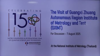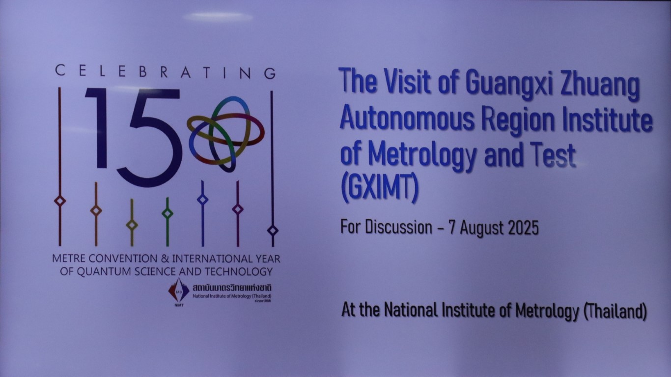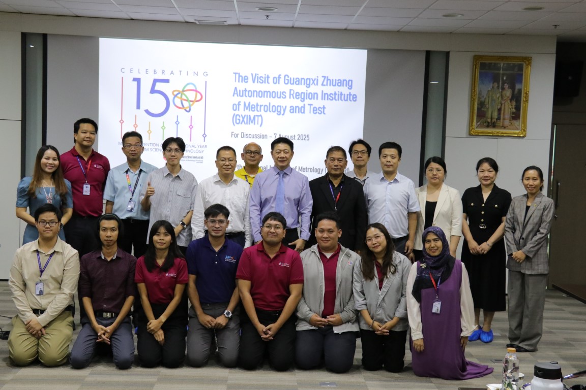 กระทรวงการอุดมศึกษา วิทยาศาสตร์ วิจัยและนวัตกรรม (อว.) สถาบันมาตรวิทยาแห่งชาต (มว.) โดยพล.ต.ท.นพ.พรชัย สุธีรคุณ ผู้อำนวยการ พร้อมด้วย นายอนุสรณ์ ทนหมื่นไวย รองผู้อำนวยการ และผู้บริหาร มว. ให้การต้อนรับ Dr. Su Yixiong, Deputy Director, Guangxi Zhuang Autonomous Region Institute of Metrology and Test และเจ้าหน้าที่จาก Guangxi ในโอกาสเข้าหารือด้านมาตรวิทยา และเยี่ยมชมห้องปฏิบัติการของสถาบัน โดยกิจกรรมดังกล่าวจัดขึ้น ณ อาคารมาตรธำรง (มว.) คลองห้า จังหวัดปทุมธานี