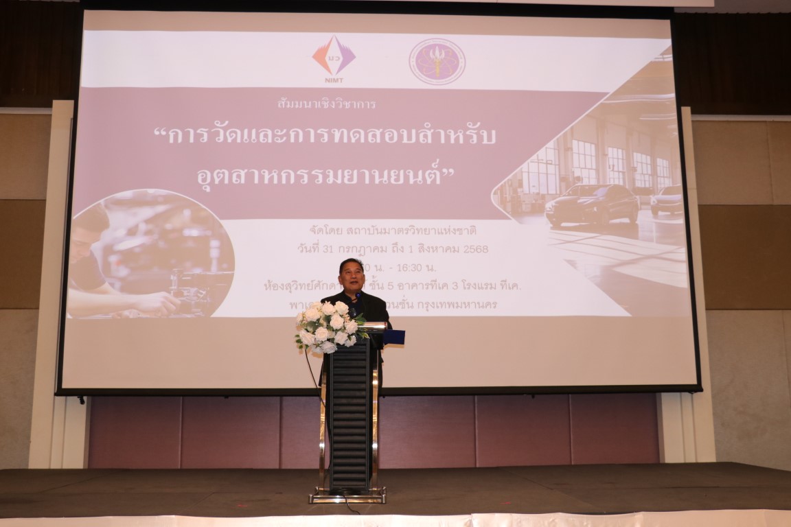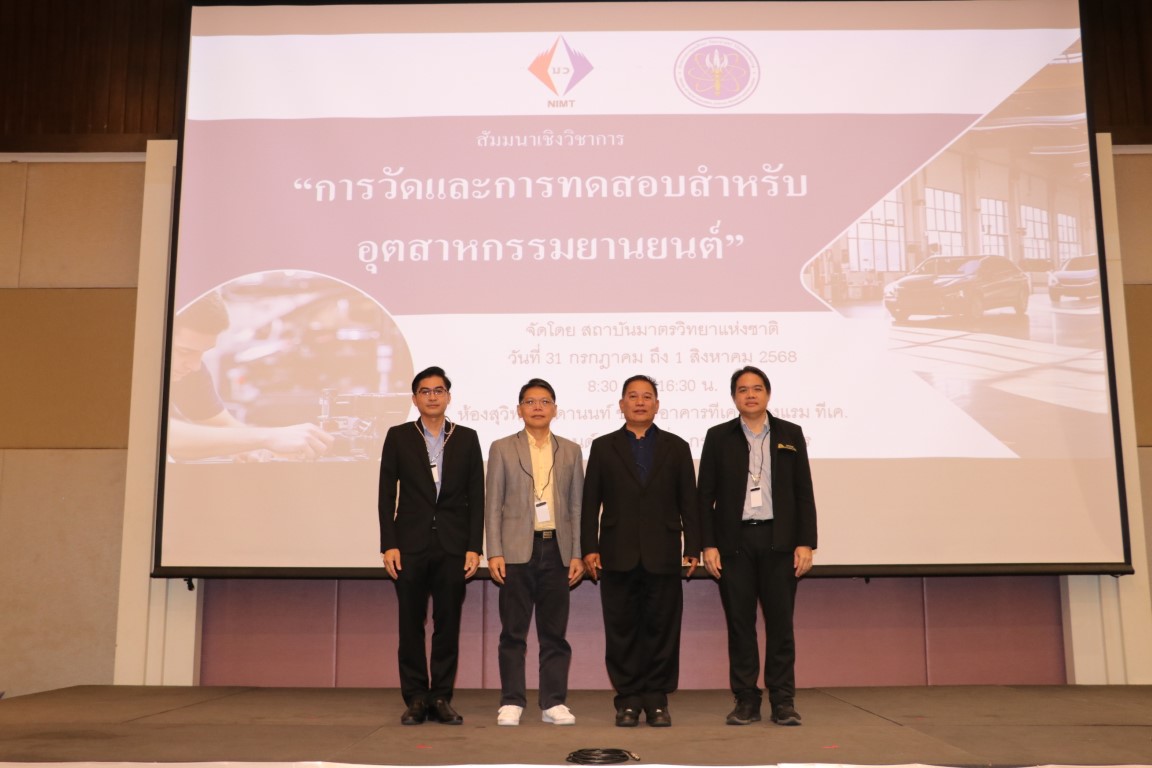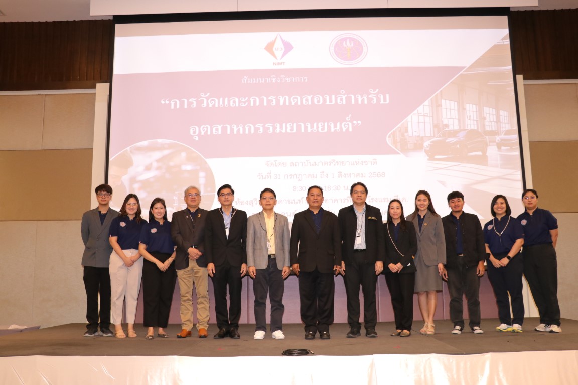 กระทรวงการอุดมศึกษา วิทยาศาสตร์ วิจัยและนวัตกรรม (อว.) สถาบันมาตรวิทยาแห่งชาติ (มว.) โดยนายอนุสรณ์ ทนหมื่นไวย รองผู้อำนวยการ ประธานกล่าวเปิดงานสัมมนาเชิงวิชาการ หัวข้อ “การวัดและการทดสอบสำหรับอุตสาหกรรมยานยนต์” จากนั้นเป็นการบรรยายเรื่อง พื้นฐานเทคโนโลยีการวัดและเซนเซอร์อัจฉริยะในยานยนต์สมัยใหม่ โดย ผศ.ดร.จักร จันทลักขณา ผศ.ดร.เขมพัฒน์ ตันติวัฒนกูล และ ผศ.ดร.ชาติชาย ชุมจันทร์ อาจารย์จากมหาวิทยาลัยเทคโนโลยีพระจอมเกล้าพระนครเหนือ และในตอนบ่ายเป็นการบรรยาย เรื่อง บทบาทมาตรวิทยาที่เกี่ยวข้องกับการวัดและการทดสอบสำหรับอุตสาหกรรมยานยนต์ โดย นางสุรัตน์ ลีอุดมวงษ์ หัวหน้ากลุ่มงานเสียงและการสั่นสะเทือน นายณัฐพล แสนคำ หัวหน้ากลุ่มงานกลศาสตร์ของแข็งและการทดสอบ ดร.ยุทธนา หงษ์อารมณ์กิจ หัวหน้าห้องปฏิบัติการขีดสเกล นายภาวัต เผือกน้อย หัวหน้ากลุ่มงานนวัตกรรมและพัฒนาเครื่องมือวัด นางสาวอณิชญ์สร สามารถ และนางสาวนิรุชา สุทธิพิทักษ์ นักมาตรวิทยากลุ่มงานเสียงและการสั่นสะเทือน มว. รวมทั้งยังมีการออกบูธจากอีก 9 บริษัทด้วยกัน การจัดสัมมนาในครั้งนี้มีวัตถุประสงค์เพื่อถ่ายทอดองค์ความรู้และเทคโนโลยีด้านการวัดและการทดสอบที่เกี่ยวข้องกับอุตสสาหกรรมยานยนต์ โดยมุ่งเน้นที่การประยุกต์ใช้เซนเซอร์อัจฉริยะและเทคโนโลยีการวัดที่ทันสมัย อันจะนำไปสู่การพัฒนาระบบช่วยขับขี่ขั้นสูงและการยกระดับความปลอดภัยในยานยนต์สมัยใหม่ อีกทั้งยังต้องการส่งเสริมบทบาทของงานมาตรวิทยาในการสนับสนุนภาคอุตสาหกรรม ทั้งในด้านการควบคุมคุณภาพ การทดสอบผลิตภัณฑ์ แลการกำหนดมาตรฐานทางเทคนิค นอกจากนี้ยังมุ่งหวังให้เกิดการแลกเปลี่ยนความรู้และประสบการณ์ระหว่างนักวิชาการ นักวิจัย บุคลากรจากหน่วยงานภาครัฐ ภาคอุตสาหกรรม และภาคการศึกษา เพื่อสร้างความร่วมมือในการพัฒนาเทคโนโลยีที่เกี่ยวข้องให้สอดคล้องกับแนวโน้มการเปลี่ยนแปลงของอุตสาหกรรมและความต้องการของตลาดในอนาคต รวมถึงการพัฒนาศักยภาพของบุคลากรไทยให้สามารถประยุกต์ใช้ความรู้ด้านมาตรวิทยาและเทคโนโลยีการวัดในระดับสูงได้อย่างมีประสิทธิภาพอีกด้วย การจัดสัมมนาเชิงวิชาการดังกล่าว จัดขึ้น ณ โรงแรม ที.เค.พาเลซ แอนด์ คอนเวนชั่น แจ้งวัฒนะ กรุงเทพฯ