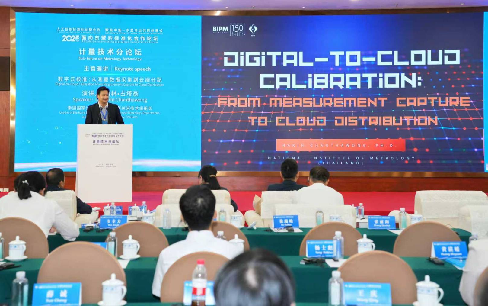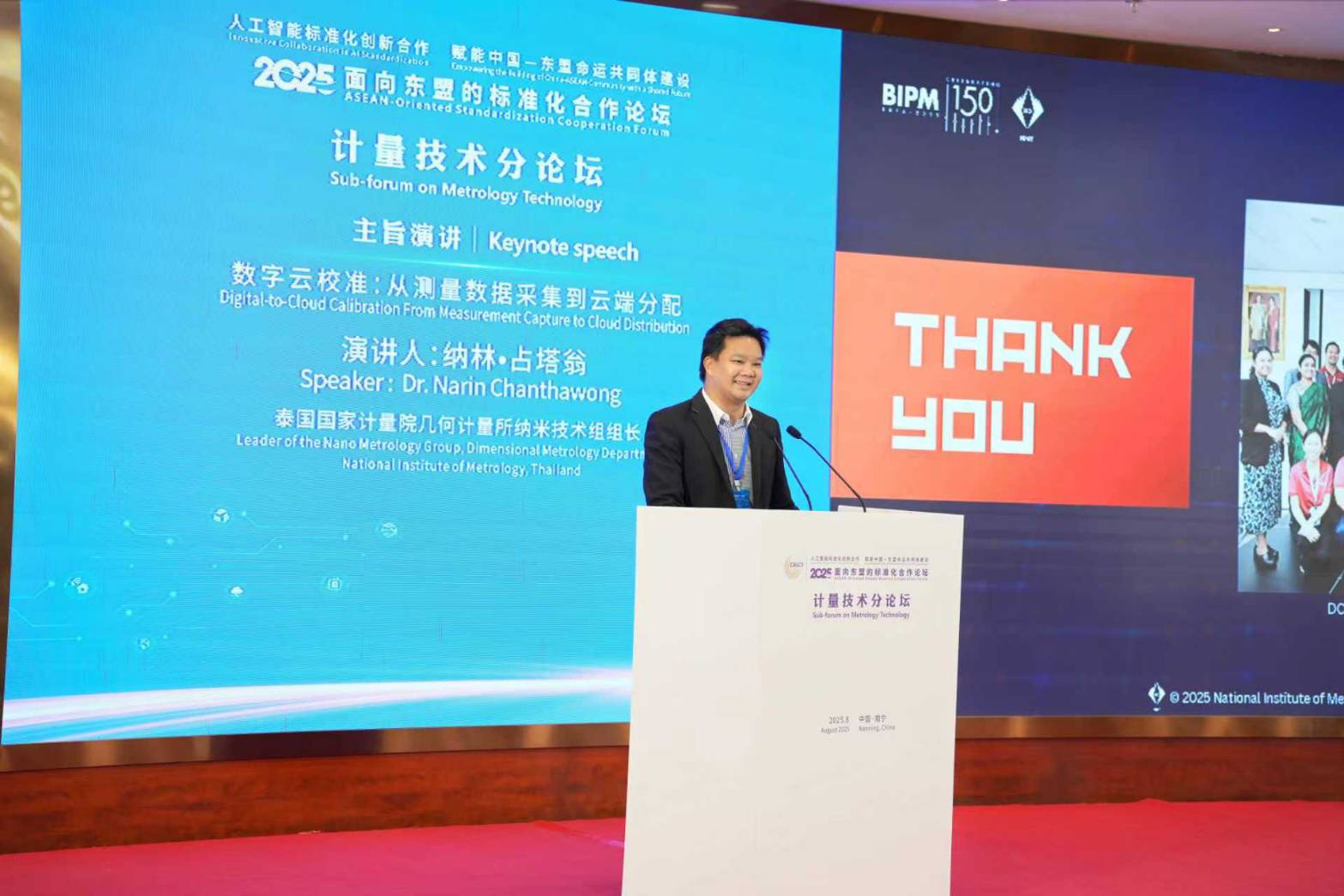 กระทรวงการอุดมศึกษา วิทยาศาสตร์ วิจัยและนวัตกรรม (อว.) สถาบันมาตรวิทยาแห่งชาติ (มว.) โดยดร.นรินทร์ จันทวงศ์ หัวหน้ากลุ่มงานมาตรวิทยานาโน ฝ่ายมาตรวิทยามิติ สถาบันมาตรวิทยาแห่งชาติ เข้าร่วมงานและบรรยายในฐานะ Keynote Speaker ในการประชุม 2025 ASEAN-Oriented Standardization Cooperation Forum ซึ่งจัดขึ้นโดย China-ASEAN Standardization Cooperation and Exchange Center ร่วมกับ ASEAN Consultative Committee for Standards and Quality (ACCSQ) เมื่อวันที่ 27 สิงหาคม 2568