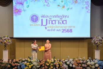 กระทรวงการอุดมศึกษา วิทยาศาสตร์ วิจัยและนวัตกรรม (อว.) จัดโครงการประกาศเกียรติคุณและแสดงมุทิตาจิตแด่ผู้เกษียณอายุราชการ ประจำปี พ.ศ 2568 เพื่อเป็นการขอบคุณ ยกย่อง เชิดชูเกียรติข้าราชการ/เจ้าหน้าที่ ที่ได้อุทิศตนทำงานเพื่อส่วนรวมมาอย่างยาวนาน ในโอกาสนี้ นางช่อทิพย์ คำมงคล พนักงานบริการลูกค้าชำนาญการ พนักงานของสถาบันมาตรวิทยาแห่งชาติ (มว.) ที่ครบอายุเกษียณราชการในปี 2568 ได้เข้าร่วมในกิจกรรมดังกล่าว ณ ห้องประชุมภูมิบดินทร์ อาคารสถานศึกษาเคมีปฏิบัติ กรมวิทยาศาสตร์บริการ ถนนโยธี กรุงเทพฯ