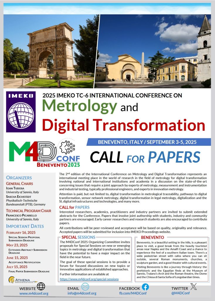 การเข้าร่วมประชุมนี้ยกระดับความรู้และทักษะเชิงวิชาการของบุคลากรด้านมาตรวิทยาดิจิทัลของ มว. ขยายเครือข่ายความร่วมมือระหว่างประเทศ เปิดโอกาสความร่วมมือด้านการวิจัยและมาตรฐานร่วมกัน เร่งการนำแนวทาง Digital-to-Cloud และ DCC มาใช้จริงในกระบวนการสอบเทียบ เพื่อสนับสนุนภาคอุตสาหกรรมและการค้าข้ามพรมแดน ช่วยเสริมภาพลักษณ์และศักยภาพของ มว. ในการเป็นหน่วยงานมาตรวิทยาที่มีบทบาทสำคัญในเวทีสากล โดยงาน M4DConf 2025 จัดโดย IMEKO TC-6 ณ เมืองเบเนเวนโต ประเทศอิตาลี