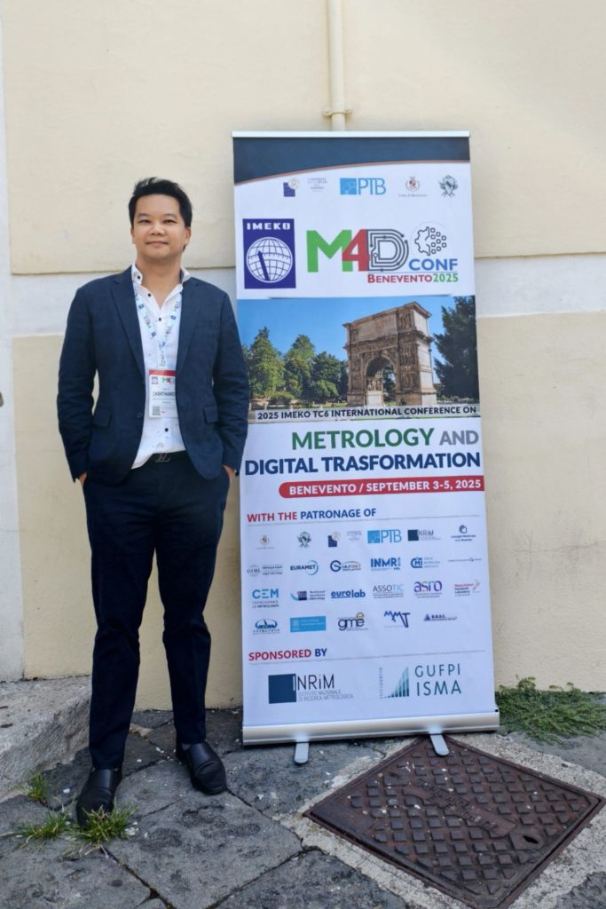 สถาบันมาตรวิทยาแห่งชาติ (NIMT) โดย ดร.นรินทร์ จันทวงศ์ หัวหน้ากลุ่มงานมาตรวิทยานาโน และ นางสาวสุนันติยา พาระนา นักมาตรวิทยา ฝ่ายมาตรวิทยามิติ เข้าร่วมการประชุม M4DConf 2025 (International Conference on Metrology and Digital Transformation) เพื่อนำเสนอผลงาน แลกเปลี่ยนองค์ความรู้ และสร้างเครือข่ายความร่วมมือระดับนานาชาติด้านมาตรวิทยาดิจิทัล