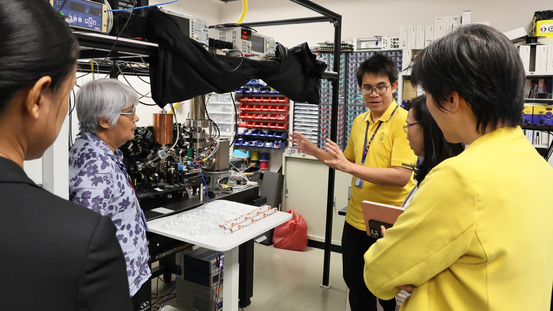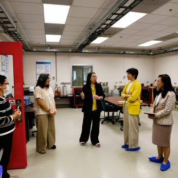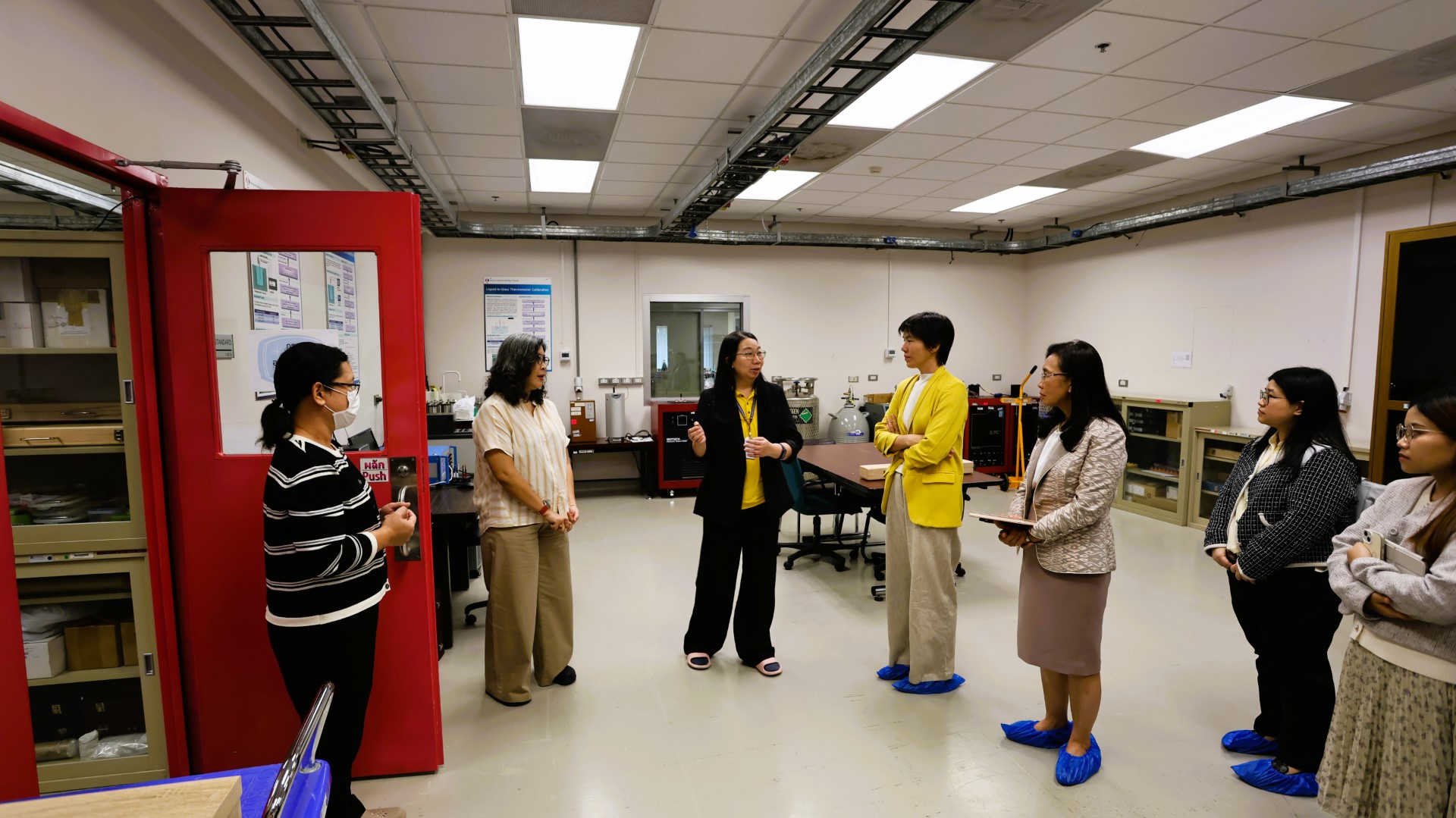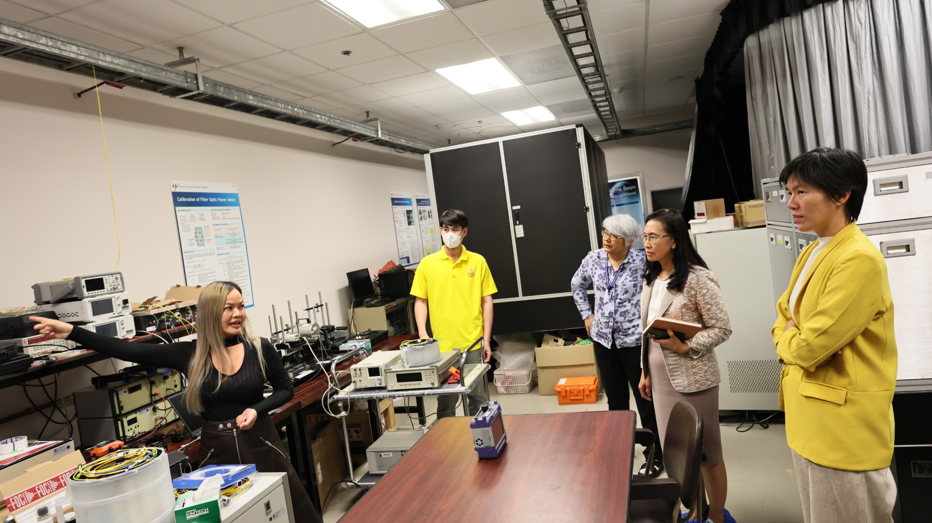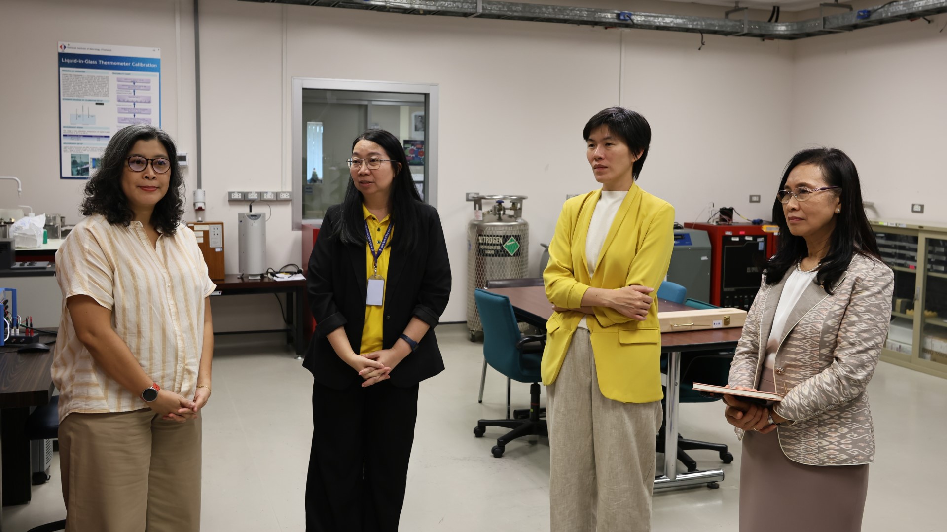 พล.ต.ท.พรชัย สุธีรคุณ ผู้อำนวยการ มว. และคณะผู้บริหาร มว. ให้การต้อนรับ ศาสตร์จารย์ (วิจัย) ดร.ชุติมา เอี่ยมโชติชวลิต ประธานคณะกรรมการหน่วยบริหารและจัดการทุนด้านการเพิ่มความสามารถในการแข่งขันของประเทศ (บพข.) พร้อมด้วย ผู้ช่วยศาสตร์จารย์ ดร.กานดา บุญโสธรสถิตย์ ผู้อำนวยการ บพข. และคณะทีมงาน บพข. เพื่อประชุมติดตามผลการดำเนินงานและผลกระทบของโครงการที่ได้รับทุนสนับสนุนจาก บพข. โดยในที่ประชุมได้นำเสนอวิสัยทัศน์และทิศทางการสนับสนุนงานวิจัยของ บพข. พร้อมทั้งนำเสนอความก้าวหน้าการดำเนินงาน รวมถึงผลกระทบของโครงการที่ได้รับทุนจาก บพข. และแผนการนำผลงานไปขยายผลสู่เชิงพาณิชย์ จากนั้น ได้เข้าเยี่ยมชมโครงการพื้นฐานของฝ่ายมาตรวิทยาเคมีและชีวภาพ ฝ่ายมาตรวิทยาอุณหภูมิและแสง และฝ่ายมาตรวิทยาไฟฟ้า มว. ณ อาคารมาตรธำรง และ อาคารผดุงมาตร มว. คลองห้า จ.ปทุมธานี เป็นลำดับ