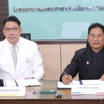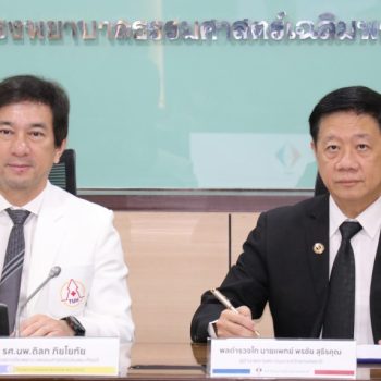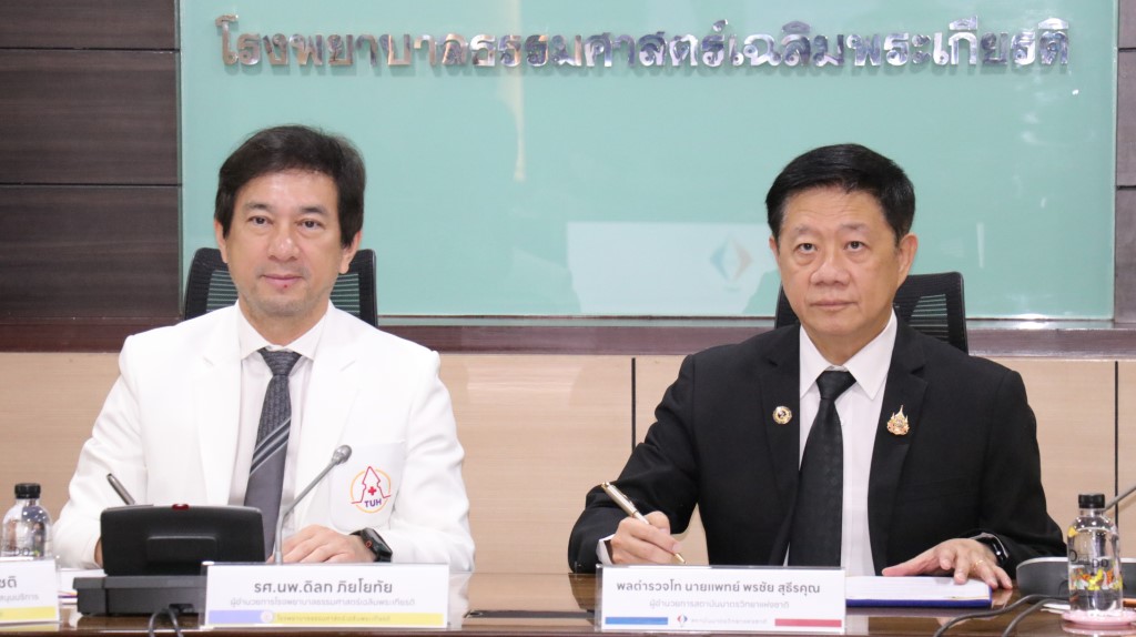 - รศ. นพ.ดิลก ภิยโยทัย ผู้อำนวยการโรงพยาบาลธรรมศาสตร์เฉลิมพระเกียรติ และ พล.ต.ท. นพ.พรชัย สุธีรคุณ ผู้อำนวยการสถาบันมาตรวิทยาแห่งชาติ (มว.) ร่วมลงนาม