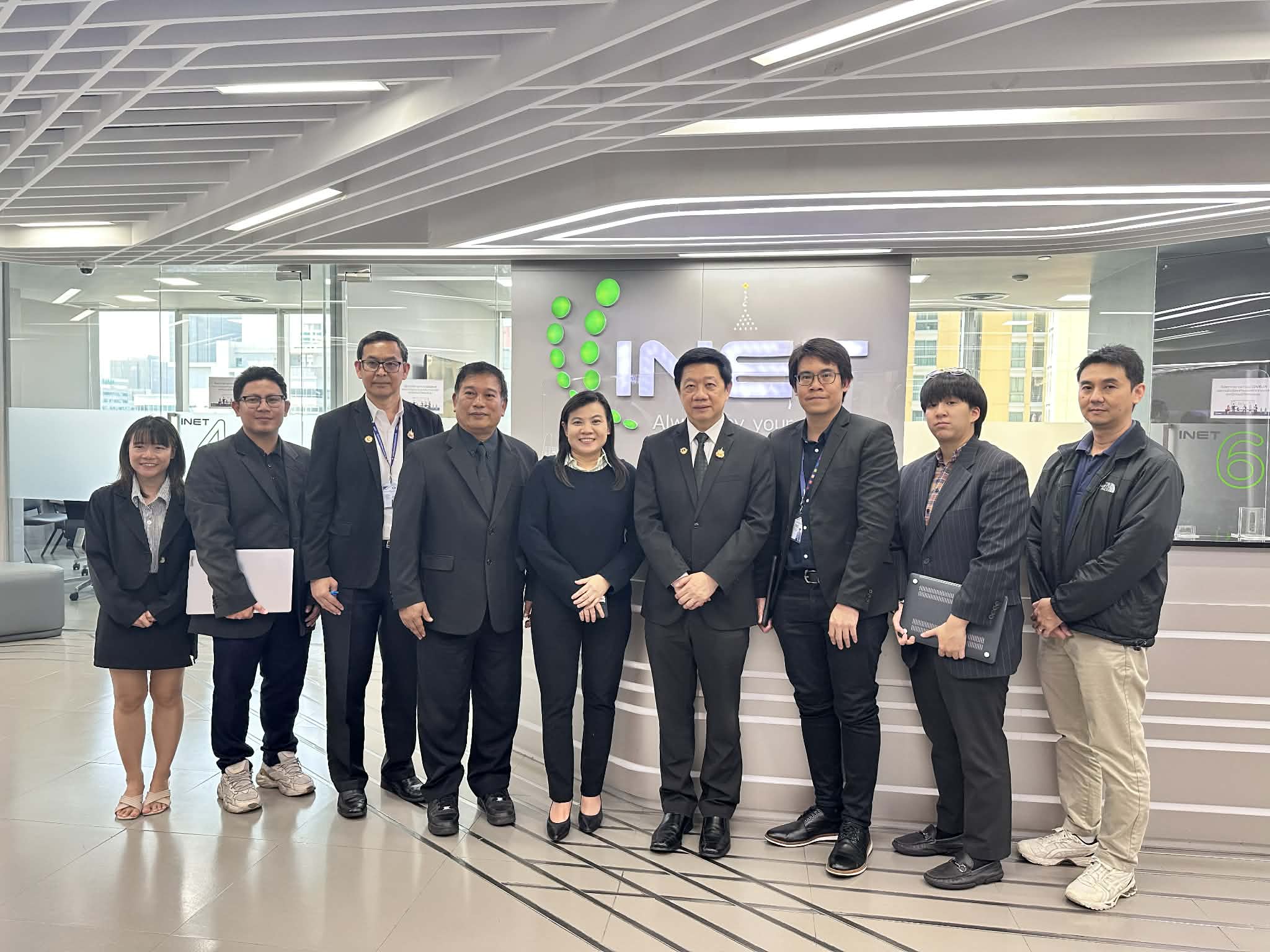 กระทรวงการอุดมศึกษา วิทยาศาสตร์ วิจัยและนวัตกรรม (อว.) โดยสถาบันมาตรวิทยาแห่งชาติ (มว.) พล.ต.ท.นพ.พรชัย สุธีรคุณ ผู้อำนวยการ พร้อมด้วยนายอนุสรณ์ ทนหมื่นไวย รองผู้อำนวยการ ดร.มณฑล หอมกลิ่นเทียน หัวหน้ากลุ่มงานมาตรฐานปฐมภูมิไฟฟ้า เวลา และความถี่ และดร.ปิยพัฒน์ พูลทอง นักมาตรวิทยาชำนาญการพิเศษ ฝ่ายมาตรวิทยาไฟฟ้า เข้าพบ ดร.รุจิรา เหนือเกาะหวาย ผู้อำนวยการส่วนงานพัฒนาธุรกิจใหม่ บริษัท อินเทอร์เน็ต ประเทสไทย จำกัด (มหาชน) หรือ INET เพื่อหารือแนวทางการทำงานร่วมกันระหว่าง NIMT และ INET เพื่อนำความสามารถของแต่ละฝ่ายมาร่วมกันพัฒนาหน่วยงานให้เกิดประโยชน์สูงสุดต่อประเทศ กิจกรรมการหารือดังกล่าวจัดขึ้น ณ ไทยซัมมิททาวเวอร์ บางกะปิ ห้วยขวาง กรุงเทพฯ