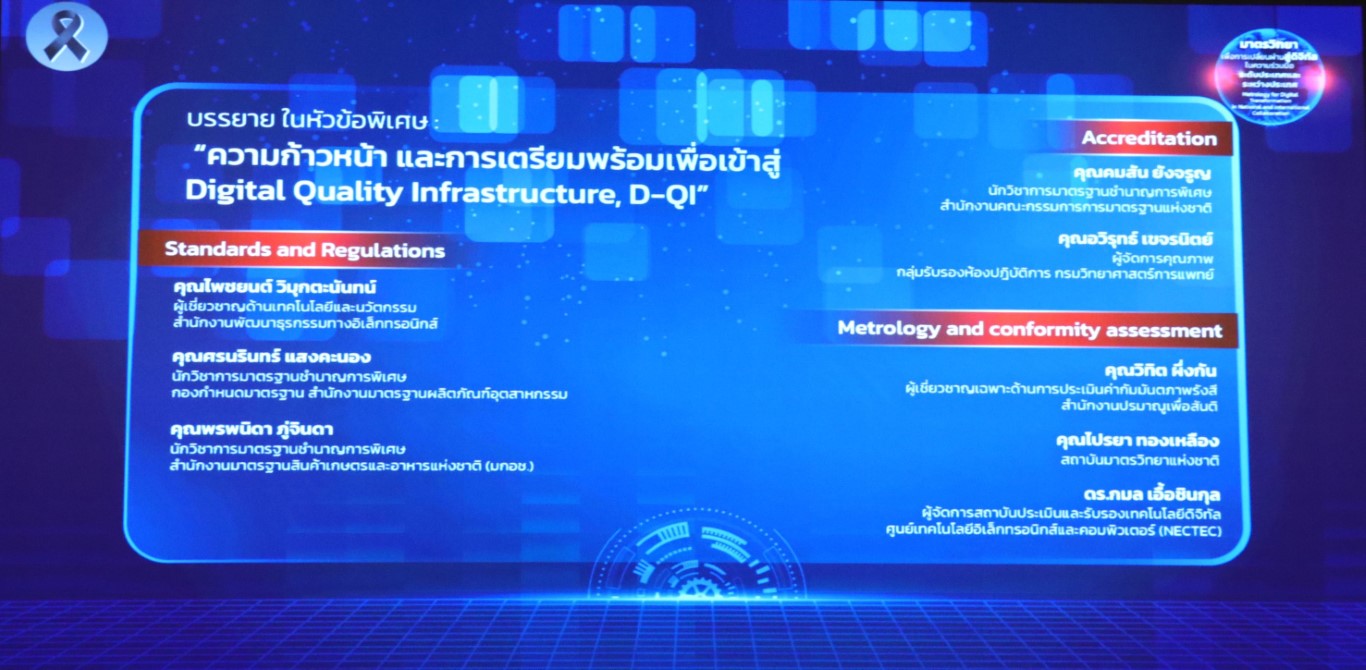 มุ่งเน้นให้หน่วยงานไทยและนานาชาติรับรู้บทบาทของมาตรวิทยาในยุคข้อมูลดิจิทัล และความจำเป็นของระบบโครงสร้างพื้นฐานคุณภาพที่เชื่อมโยงกันด้วยข้อมูลมาตรฐาน