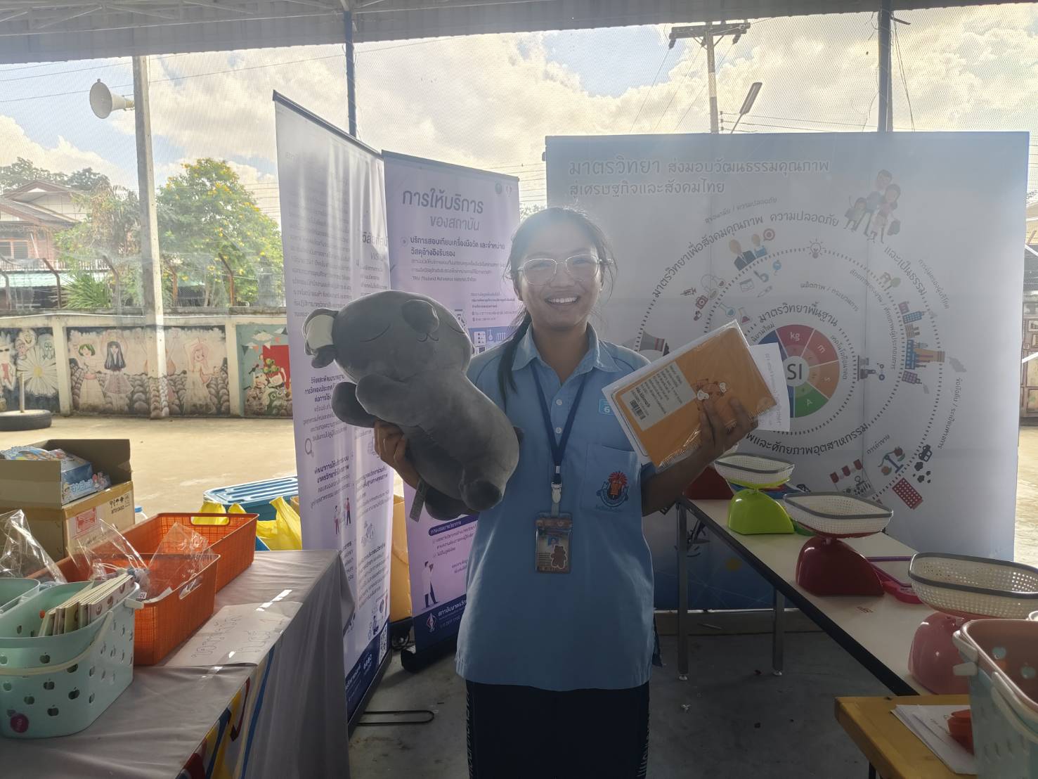 ในงานนี้ มว. ได้ร่วมจัดนิทรรศการ ภายใต้แนวคิด “หนูน้อยนักคิด…มาตรวิทย์ มาตรวัด” โดยการนำกิจกรรมเกมที่ช่วยเสริมสร้างความรู้ด้านมาตรวิทยาที่เกี่ยวข้องกับการวัดในชีวิตประจำวัน เพื่อให้เด็กและเยาวชนในเขตอำเภอแก้งคร้อ จังหวัดชัยภูมิ รวมถึงอำเภอใกล้เคียง มีความรู้ความเข้าใจที่ถูกต้องในการเลือกใช้เครื่องมือวัดอย่างเหมาะสม อาทิ การใช้เครื่องมือวัดประเภท “เครื่องชั่งน้ำหนัก” ที่มีอยู่หลากหลายชนิด และต้องเลือกใช้ให้เหมาะสมกับการใช้งาน นอกจากนั้นยังได้เสริมเกมที่จะช่วยพัฒนาทักษะความคิด สติปัญญา และความรวดเร็วในการใช้สมอง อาทิ เกม crossword และเกมเขาวงกตมาตรวิทยา ที่ได้สอดแทรกสาระความรู้เกี่ยวกับคำศัพท์ด้านมาตรวิทยา และหน่วยวัด SI ทั้ง 7 หน่วยลงไปด้วย โดยน้องๆ ที่ร่วมกิจกรรมจะได้รับของที่ระลึกจาก มว. ที่เป็นการส่งมอบความสุข ความสนุกสนาน ในช่วงเทศกาลส่งท้ายปีเก่า ต้อนรับปีใหม่ 2569 อีกด้วย
