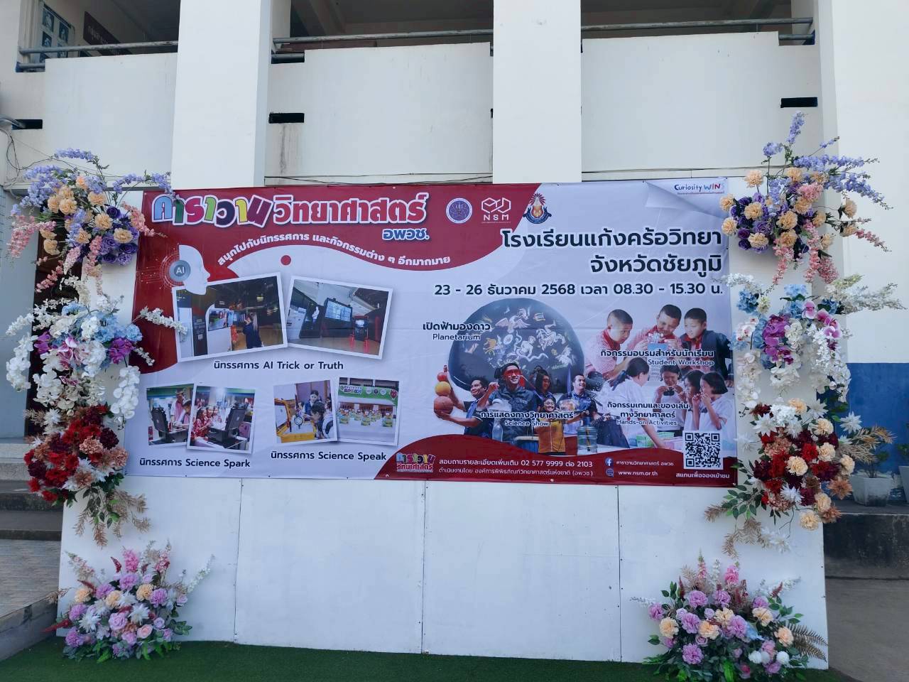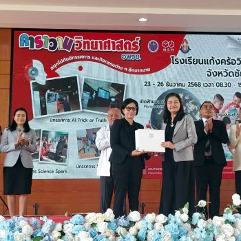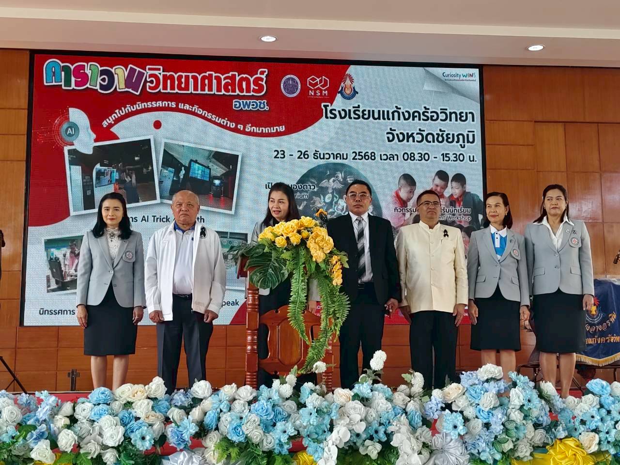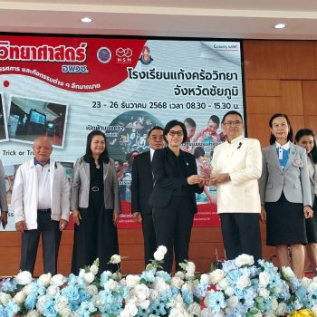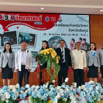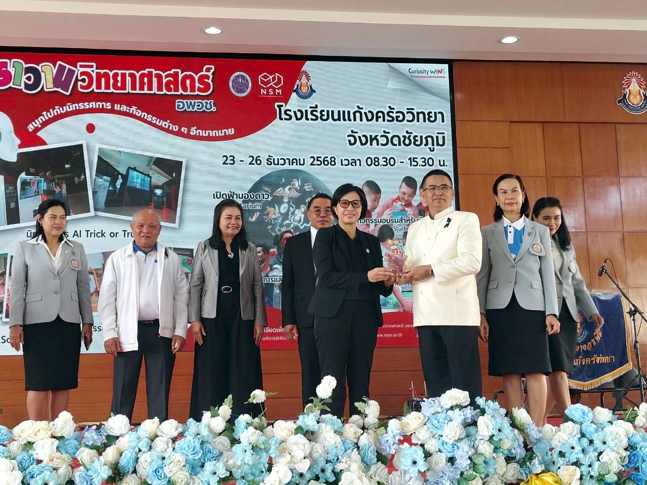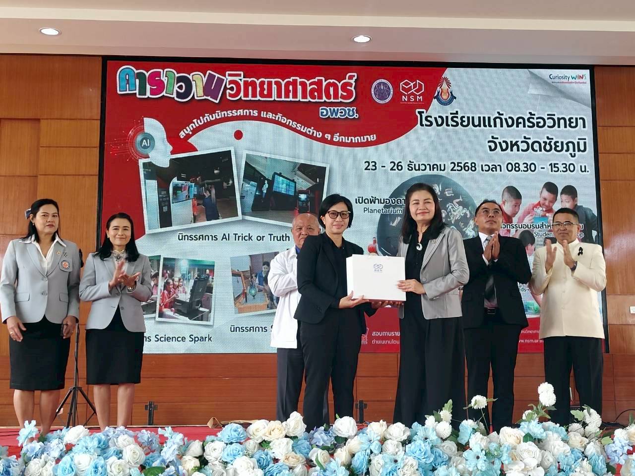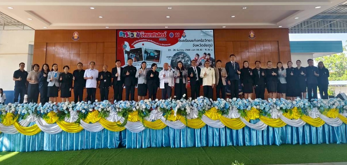 23 ธันวาคม 2568 – น.ส.ฐานิยา คัมภิรานนท์ หัวหน้ากลุ่มงานสื่อสารองค์การ สถาบันมาตรวิทยาแห่งชาติ (มว.) เข้าร่วมพิธีเปิดงานคาราวานวิทยาศาสตร์ อพวช. ประจำปี 2569 ณ โดมเอนกประสงค์ โรงเรียนแก้งคร้อวิทยา อ.แก้งคร้อ จ.ชัยภูมิ โดยมี ดร.มะลิวัน มาเหง่า ผู้อำนวยการสำนักงานเขตพื้นที่การศึกษามัธยมศึกษาชัยภูมิ ให้เกียรติเป็นประธานในพิธีเปิดงาน พร้อมด้วยนายวานิส เพียนอก ผู้อำนวยการโรงเรียนแก้งคร้อวิทยา ร่วมกล่าวต้อนรับ และนางสาวนพรัตน์ เทพเทพา ผู้อำนวยการสำนักวิศวกรรมและการผลิตสื่อ อพวช. กล่าวรายงานวัตถุประสงค์การจัดงาน โดยสรุปว่า กิจกรรม “คาราวานวิทยาศาสตร์ อพวช.” ได้เดินทางเพื่อสร้างแรงบันดาลใจให้กับเด็กและเยาวชนทั่วประเทศมาอย่างต่อเนื่องตั้งแต่ปี 2548 จนถึงปัจจุบัน เป็นระยะเวลา 20 ปี มีผู้เข้าร่วมกิจกรรมกว่า 10 ล้านคน ด้วยความเชื่อมั่นว่า “วิทยาศาสตร์” จะเปิดโลกแห่งความคิด และพัฒนาเยาวชนให้เติบโตเป็นคนคุณภาพของสังคมได้ต่อไป