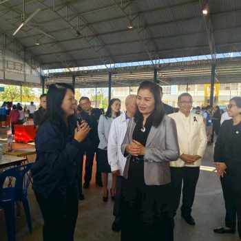 - น.ส.ฐานิยา คัมภิรานนท์ หัวหน้ากลุ่มงานสื่อสารองค์การ มว. ให้การต้อนรับคณะผู้บริหาร