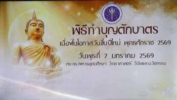 กระทรวงการอุดมศึกษา วิทยาศาสตร์ วิจัยและนวัตกรรม (อว.) กำหนดจัดพิธีทำบุญตักบาตรเนื่องในโอกาสวันขึ้นปีใหม่ พุทธศักราช 2569 เพื่อความเป็นสิริมงคล เริ่มต้นปีใหม่ด้วยสิ่งที่เป็นมงคล ส่งเสริมคุณธรรมและศาสนา รวมทั้งสืบทอดและส่งเสริมวัฒนธรรมประเพณีอันดีงามของไทย ในการนี้ พล.ต.ท.พรชัย สุธีรคุณ ผู้อำนวยการ สถาบันมาตรวิทยาแห่งชาติ (มว.) พร้อมด้วยพนักงาน และนักมาตรวิทยา (มว.) เข้าร่วมในพิธีทำบุญตักบาตรด้วย โดยกิจกรรมดังกล่าวจัดขึ้น ณ ห้องแถลงข่าว อาคารพระจอมเกล้า สำนักปลัดกระทรวง อว. (โยธี) กรุงเทพ