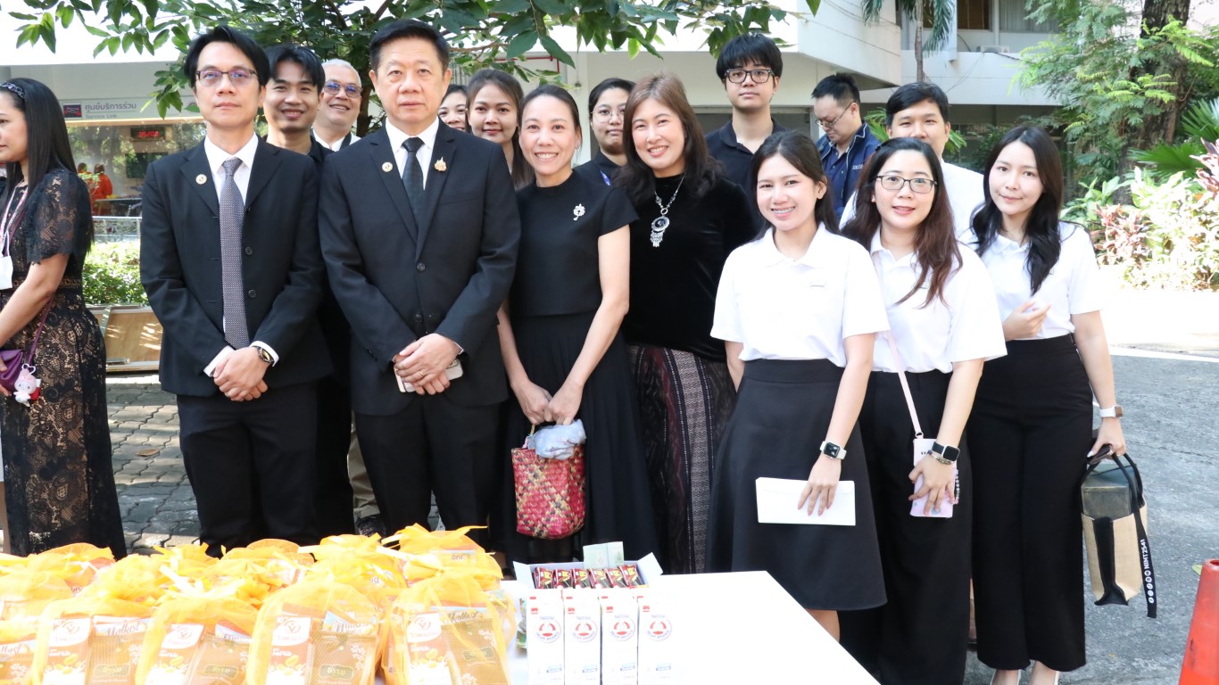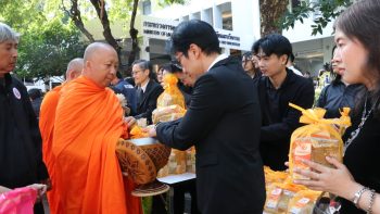 - ผู้อำนวยการ มว. พร้อมด้วยพนักงานและเจ้าหน้าที่ร่วมพิธีทำบุญตักบาตร