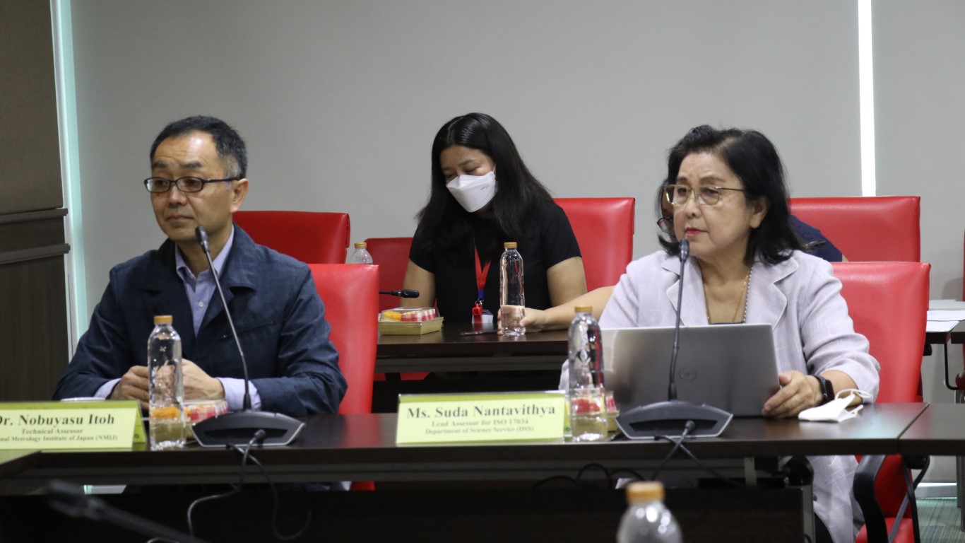 พล.ต.ท.พรชัย สุธีรคุณ ผู้อำนวยการ ดร.จรัญ ยะฝา ผู้ช่วยผู้อำนวยการ มว. ดร.กิตติยา เชียร์แมน หัวหน้าฝ่ายมาตรวิทยาเคมีและชีวภาพ และทีมนักมาตรวิทยาจาก กลุ่มงานวิเคราะห์อินทรีย์เคมี รวมทั้งคุณจรวยรัตน์ เหย่ากุลบดี ผู้จัดการคุณภาพ ISO/IEC 17025 และทีมงานระบบคุณภาพฯ ร่วมประชุมการตรวจประเมินระบบคุณภาพ ISO/IEC 17025 และ ISO 17034 ในรูปแบบ Pathway A โดยขอรับการรับรองจาก สมอ. และ วศ. โดยมีผู้ตรวจประเมินด้านเทคนิค Dr. Nobuyasu ITOH จาก National Metrology Institute of Japan (NMIJ), ประเทศญี่ปุ่น ผู้ตรวจประเมินด้านระบบคุณภาพ ISO/IEC 17025 (Quality Expert) จากสำนักงานมาตรฐานผลิตภัณฑ์อุตสาหกรรม (สมอ.) คุณศิโรรัตน์ ทอนฮามแก้ว ผู้ตรวจประเมินด้านระบบคุณภาพ ISO 17034 จากกรมวิทยาศาสตร์บริการ (วศ.) คุณสุดา นันทวิทยา (อดีตผู้อำนวยการสำนักงานบริหารและรับรองห้องปฏิบัติการ กรมวิทยาศาสตร์บริการ) และทีมงาน ซึ่งการตรวจประเมินนี้เป็นการตรวจประเมินเพื่อรักษาสถานภาพ และขยายขีดความสามารถ ของกลุ่มงานวิเคราะห์อินทรีย์เคมี ฝ่ายมาตรวิทยาเคมีและชีวภาพ มว. ซึ่งกิจกรรมนี้จะไปสนับสนุนอุตสาหกรรมอาหารฮาลาล สมุนไพร การแพทย์ อ้อย น้ำตาลทรายและเครื่องดื่ม โดยการตรวจประเมินดังกล่าวจัดขึ้น ณ อาคารมาตรธำรง (มว.) คลองห้า จังหวัดปทุมธานี