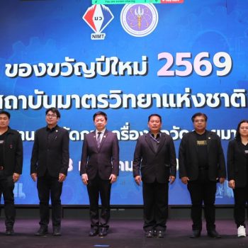 สถาบันมาตรวิทยาแห่งชาติ (มว.) ร่วมมอบของขวัญปีใหม่เพื่อประชาชน 2569 ตามนโยบาย นายสุรศักดิ์ พันธ์เจริญวรกุล รัฐมนตรีว่าการกระทรวงการอุดมศึกษา วิทยาศาสตร์ วิจัยและนวัตกรรม (อว.) นำทีมโดย พล.ต.ท. พรชัย สุธีรคุณ ผู้อำนวยการ นายอนุสรณ์ ทนหมื่นไวย รองผู้อำนวยการ พร้อมด้วยผู้บริหารและพนักงาน มว. ได้มีส่วนร่วมส่งความสุขให้กับประชาชนในช่วงเทศกาลตามนโยบายของรัฐบาล ในกล่องที่ 3 “Upskill – Reskill เปลี่ยนความรู้เป็นอาชีพ เปลี่ยนทักษะเป็นอนาคต” จัดให้มีบริการวิชาการ/ฝึกอบรมหลักสูตร Upskill-Reskill ให้แก่ภาคอุตสาหกรรมและประชาชนที่สนใจทั่วประเทศ ภายใต้หัวข้อ “สร้างมาตรฐานและจัดการเครื่องมือวัดด้วยมาตรวิทยา” โดยไม่เสียค่าใช้จ่าย จัดขึ้นทั้งแบบ On-Site ณ ห้องประชุมแสงเทียนแสงเดือน อาคารพิพิธภัณฑ์พระรามเก้า องค์การพิพิธภัณฑ์วิทยาศาสตร์แห่งชาติ (อพวช.) เทคโนธานี คลองห้า จังหวัดปทุมธานี และผ่านระบบการประชุมทางไกล (Zoom Meeting) โดยมีผู้สนใจเข้าร่วมงานดังกล่าวเป็นจำนวนมาก กิจกรรมในงานประกอบด้วย
